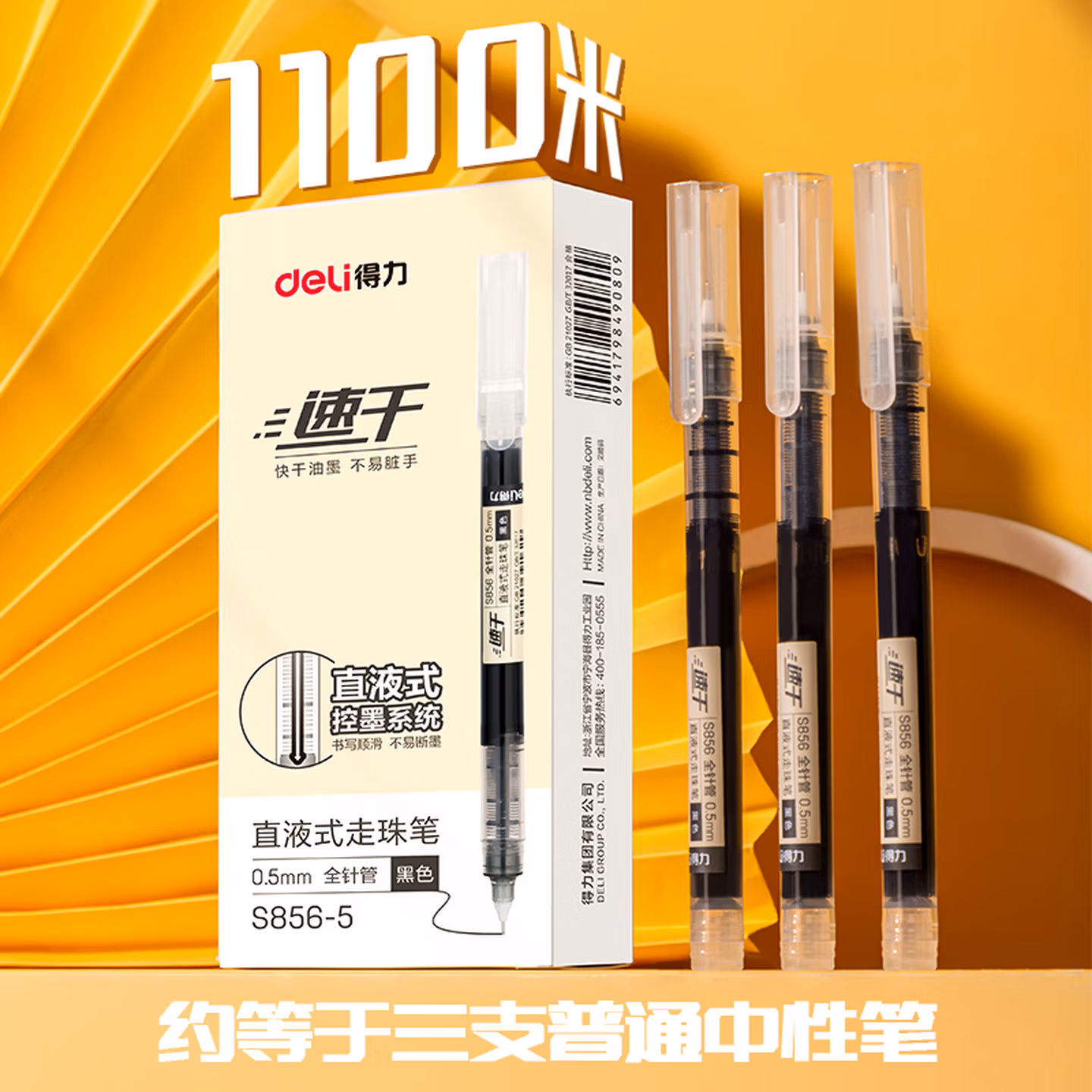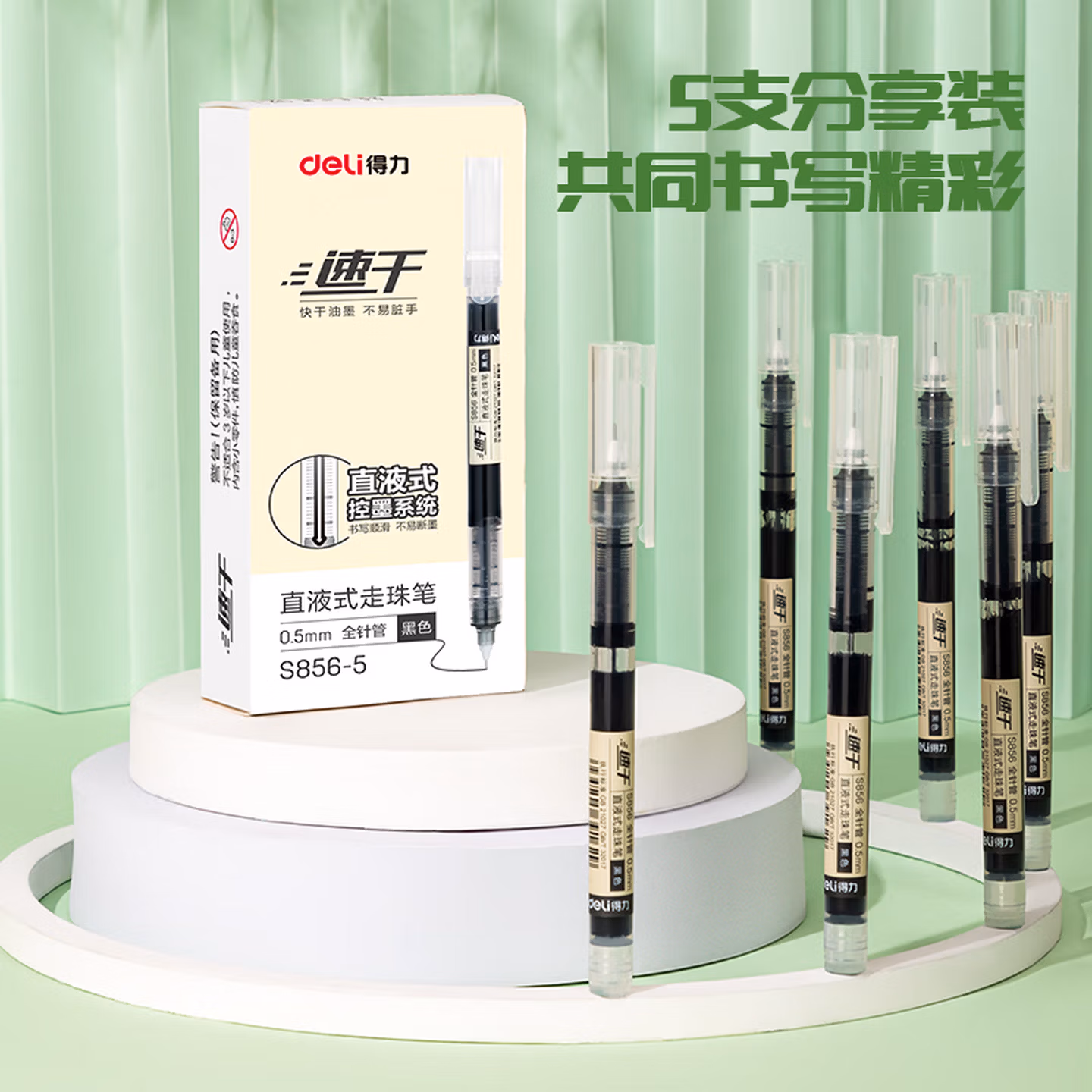 > 得力(deli)直液笔速干笔签字笔 全针管中性笔 商务办公学生考试刷题笔水笔走珠笔 书写不脏手 【黑色小包装】0.5mm黑5支