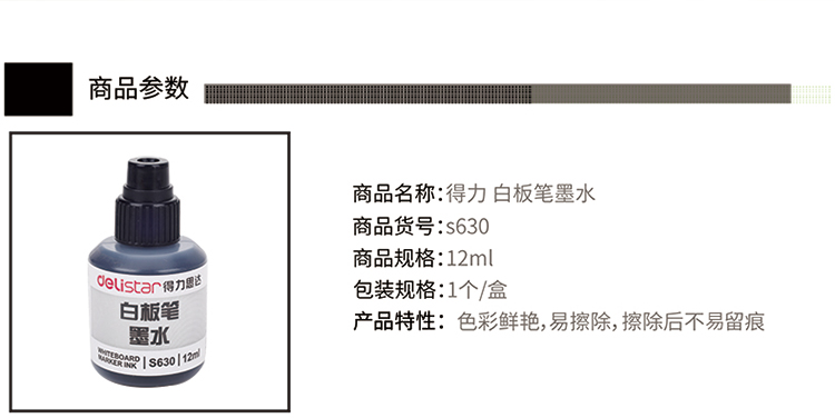 > 【学生暑期】得力(deli)12ml可加墨白板笔墨水 黑色 S630