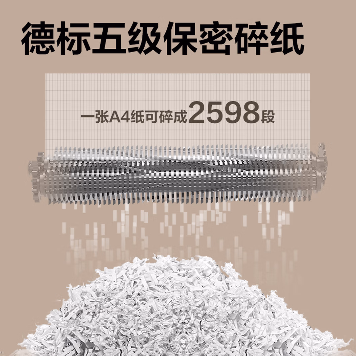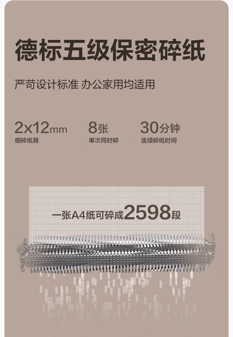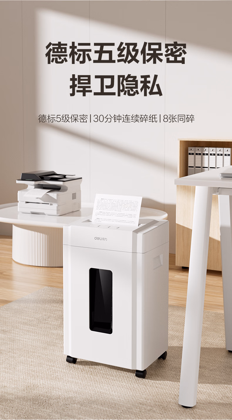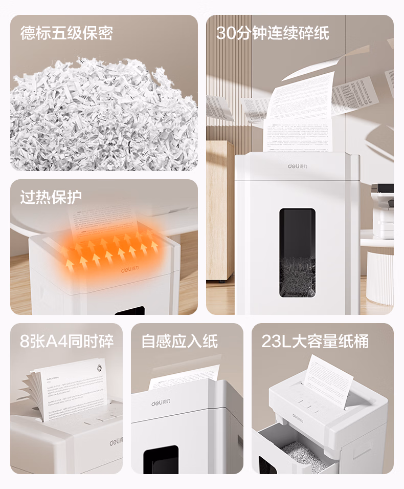 > 得力碎纸机 大型办公5级保密单次8张碎纸 23L可视大容量商用家用文件A4粉碎机 可碎光盘/卡/钉 33043