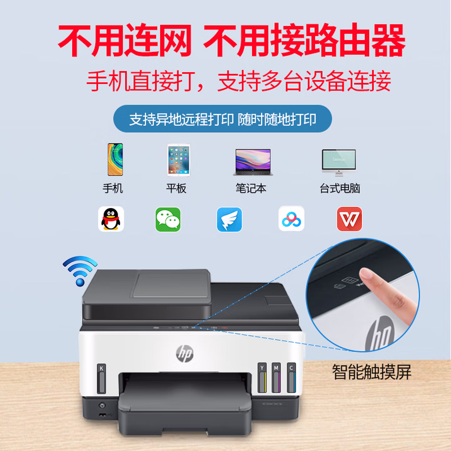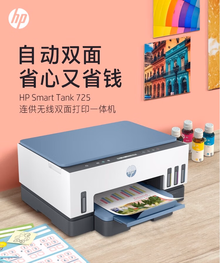 惠普(HP)798 双面无线连供打印机家用 四合一彩色打印复印扫描商用办公一体机 内置墨仓单页成本1分钱