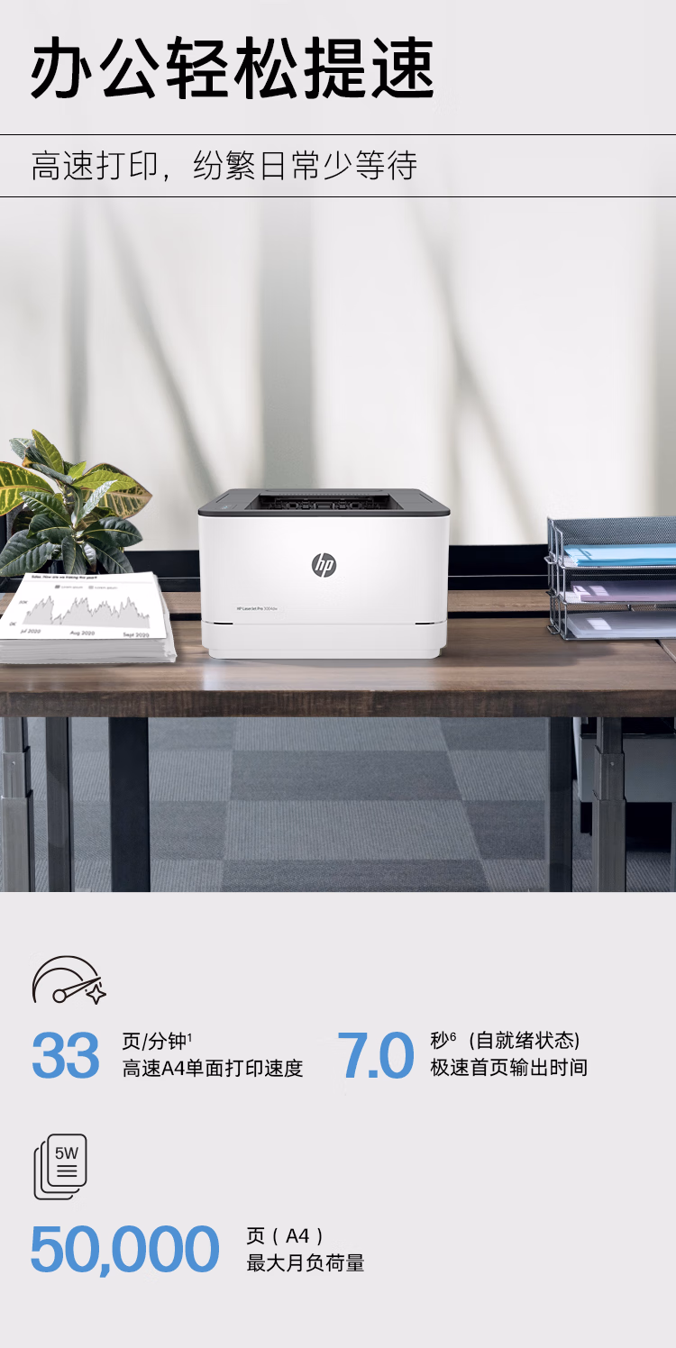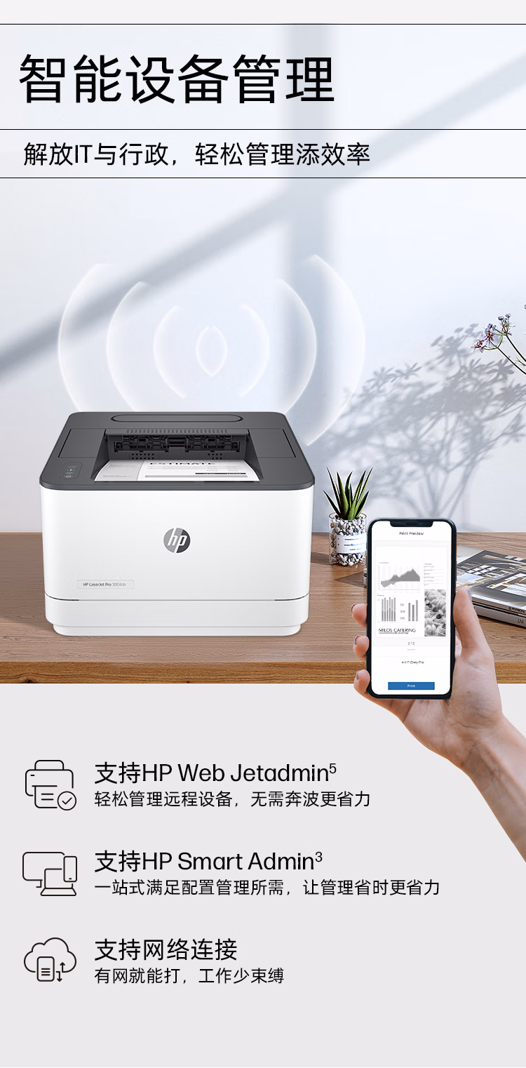 惠普(HP) 3004dw自动双面无线黑白激光打印机 智能管理 月负荷5万页