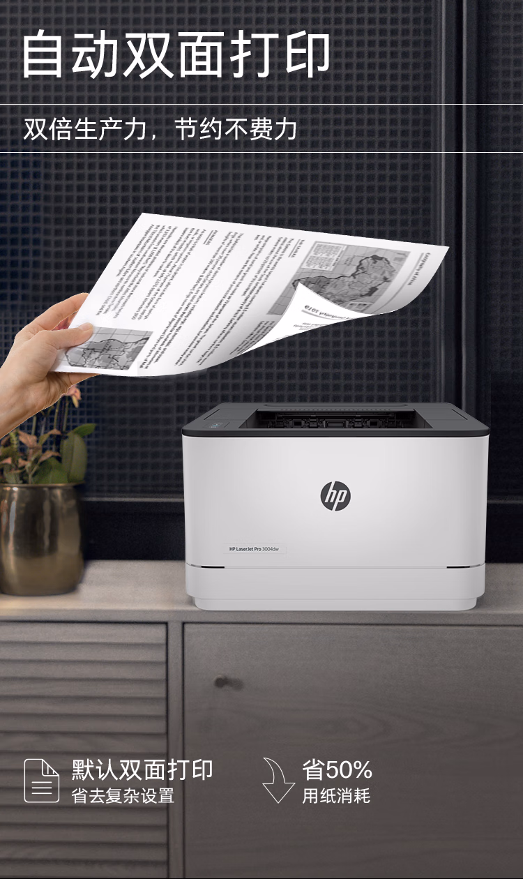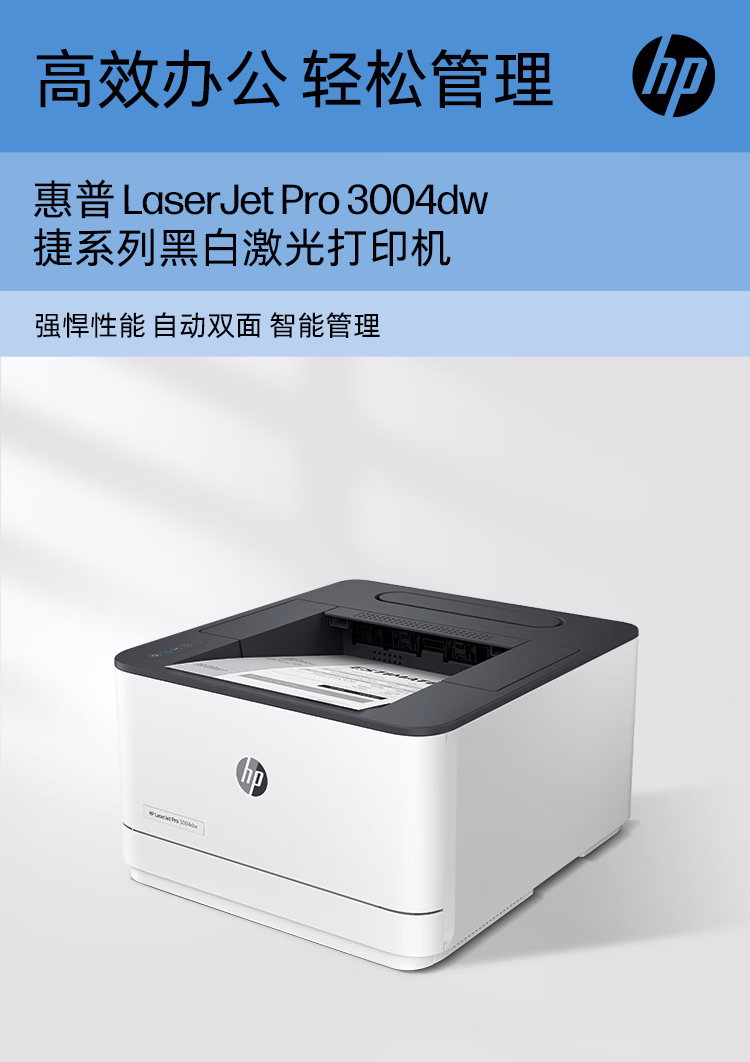 > 惠普(HP) 3004dw自动双面无线黑白激光打印机 智能管理 月负荷5万页