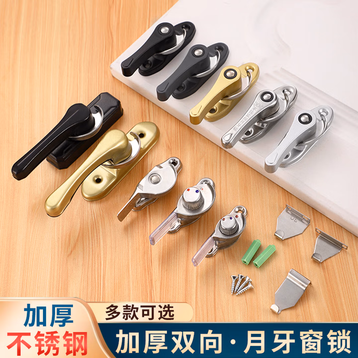 > 圣垛山不锈钢月牙锁铝合金塑钢窗户钩锁窗门搭扣左右通用老式门窗锁