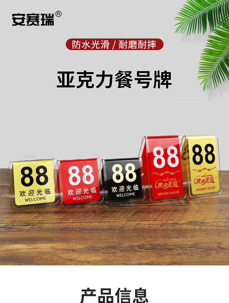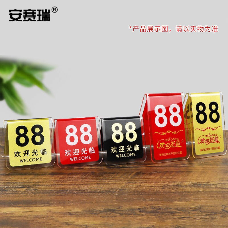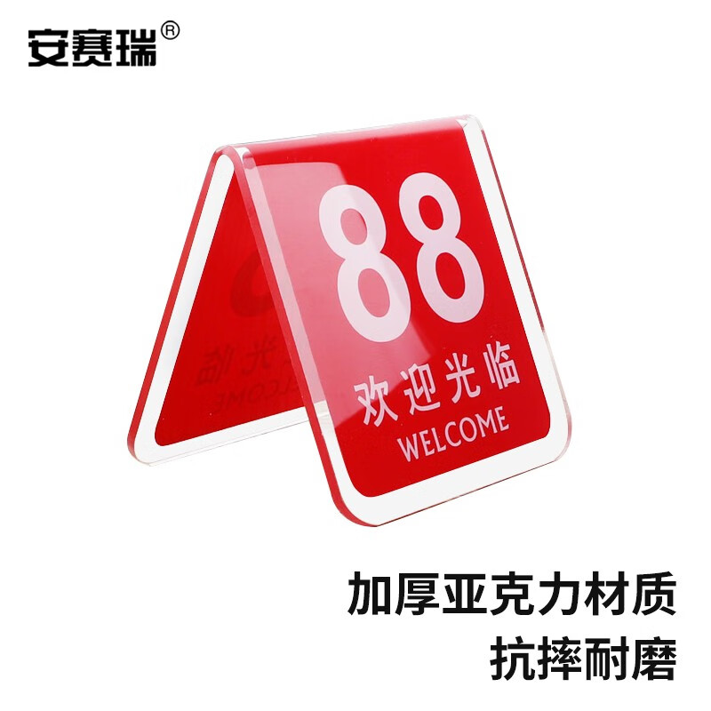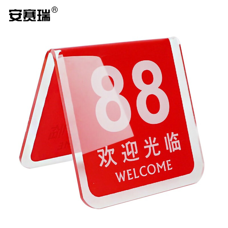 > 安赛瑞 亚克力餐号牌 饭店双面数字点餐座位号码牌 叫号立牌桌牌 V型红色 1H01181