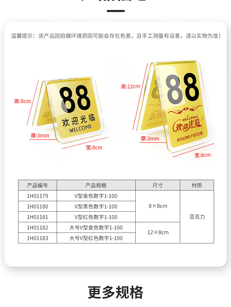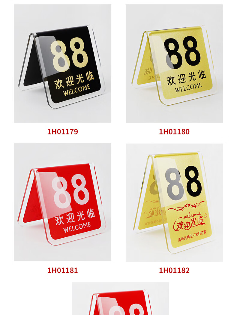 安赛瑞 亚克力餐号牌 饭店双面数字点餐座位号码牌 叫号立牌桌牌 V型红色 1H01181