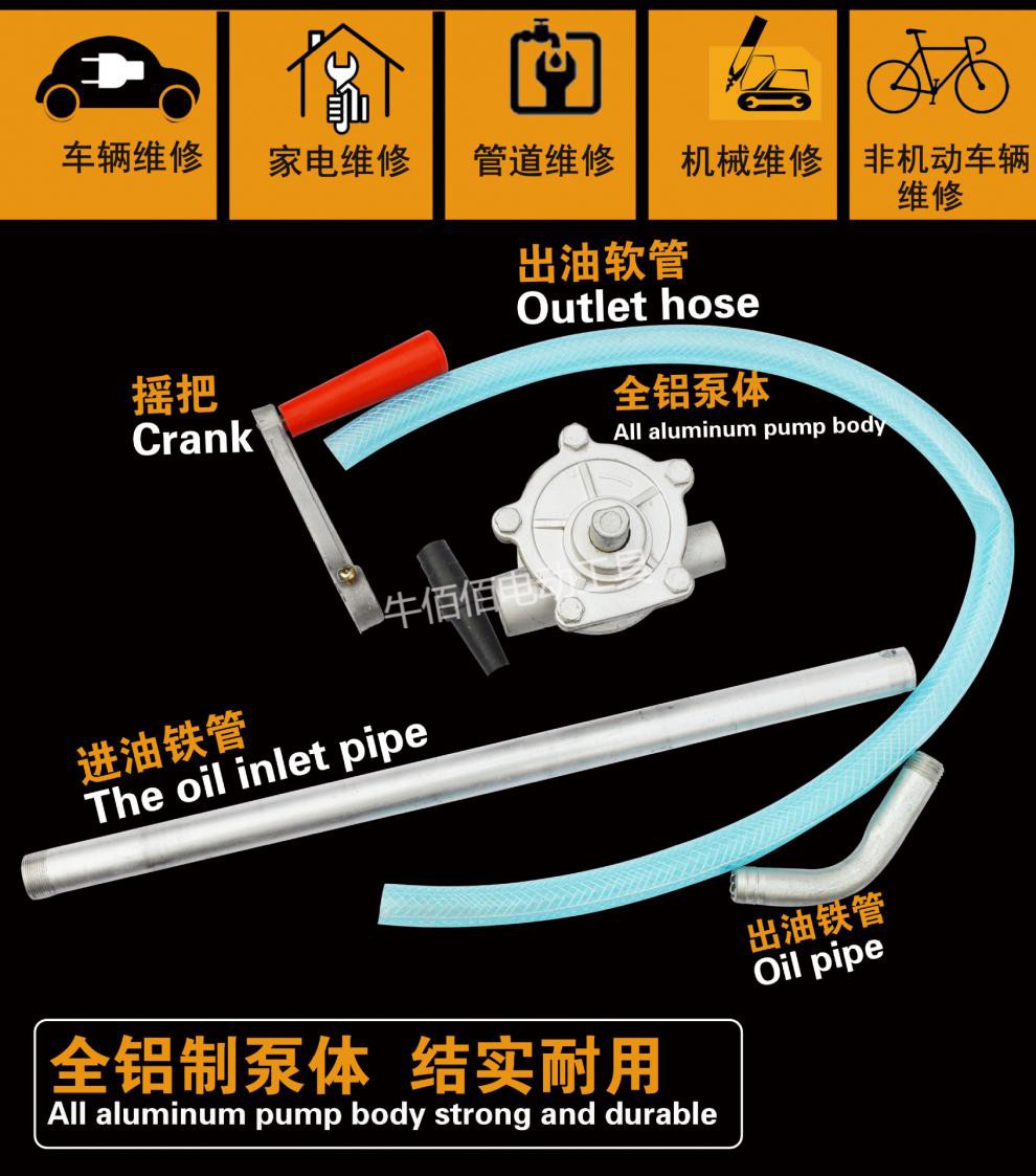 > 铝合金手摇油泵防爆油抽手动抽油泵吸油机油桶泵加油泵齿轮油 大铝泵(可抽汽油柴油)
