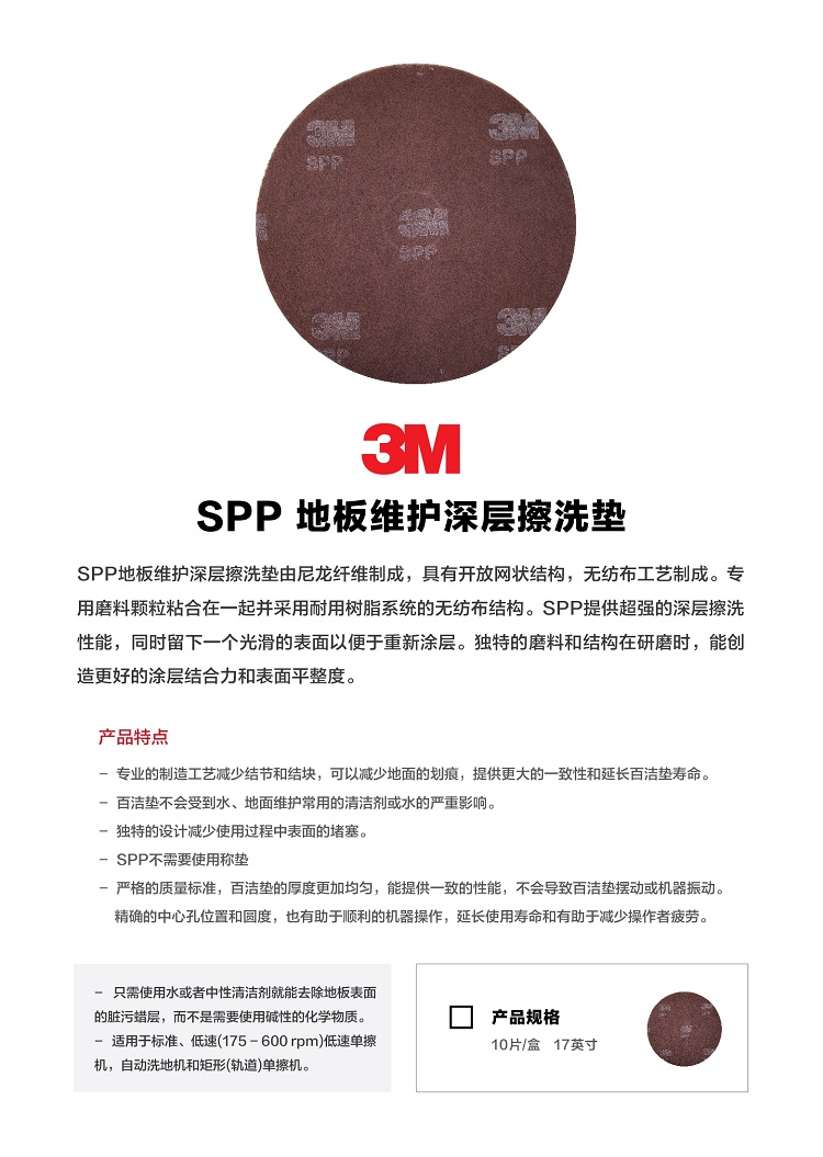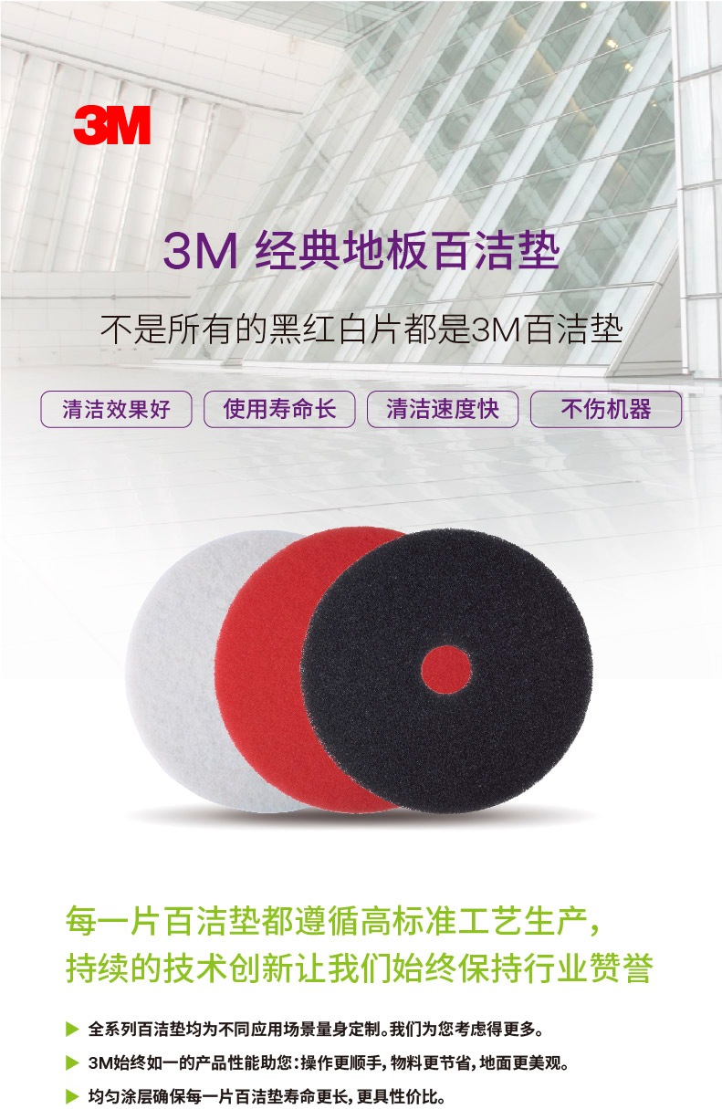 > 3M 4100 白色抛光垫 刷片百洁垫地面抛光垫 白色17英寸 5片/箱