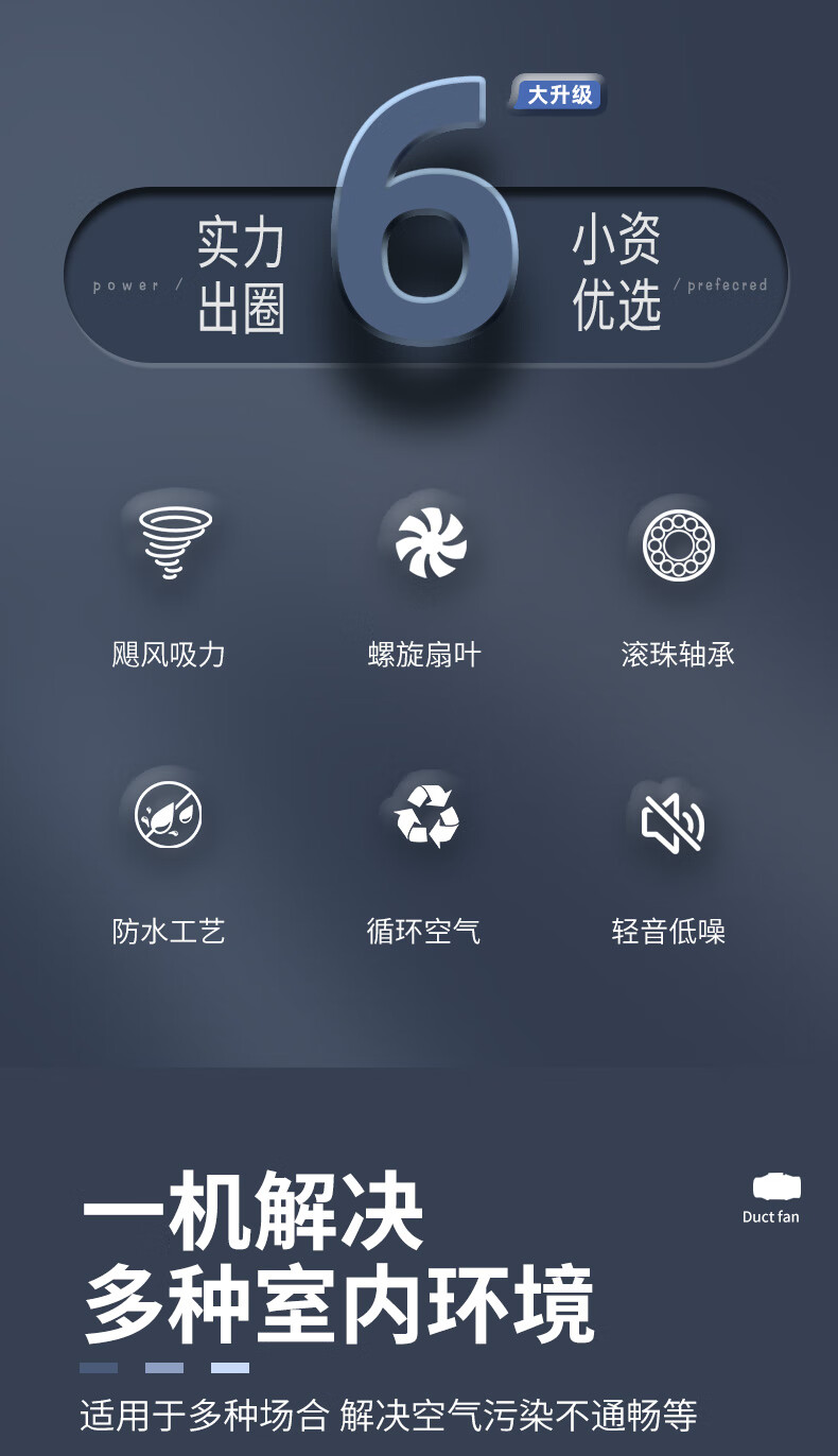 奥克斯(AUX)换气扇管道风机斜流增压家用油烟机强吸力静音排风扇抽风机排气扇 【风量210m3/h】单速管接100mm