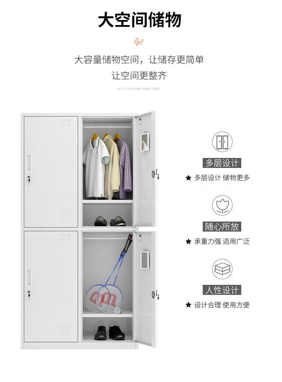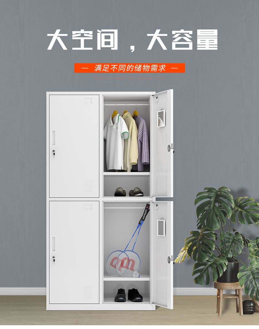 信京更衣柜员工柜带锁铁皮储物柜浴室健身房柜子钢制四门衣柜加厚