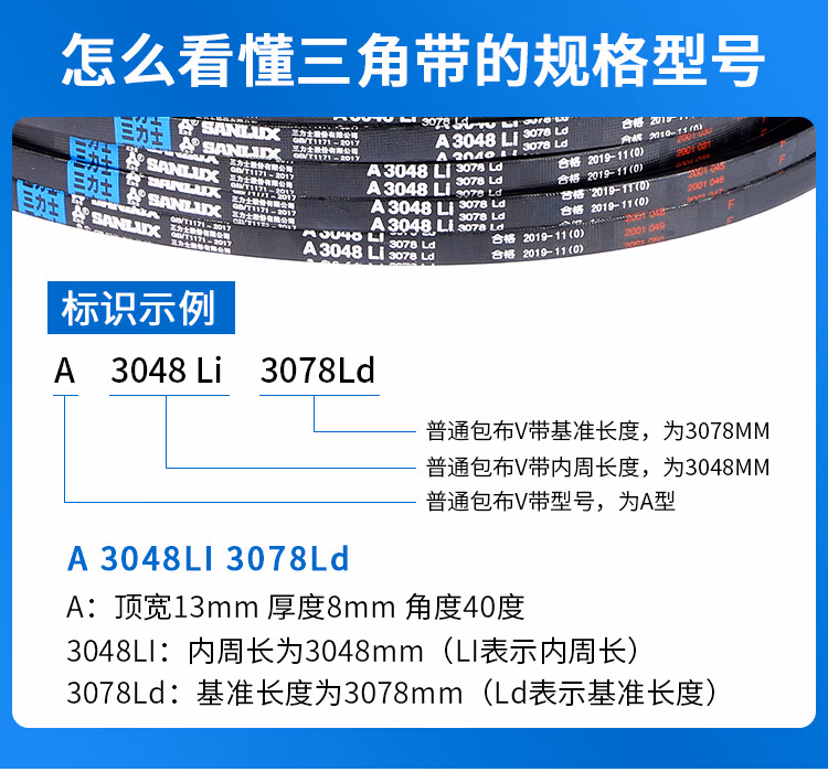 > 三力士(SANLUX)B2200-3378B型三角带 2210 2235 2240 2250 2261 2286 2300 三力士皮带三角带B型2235Li
