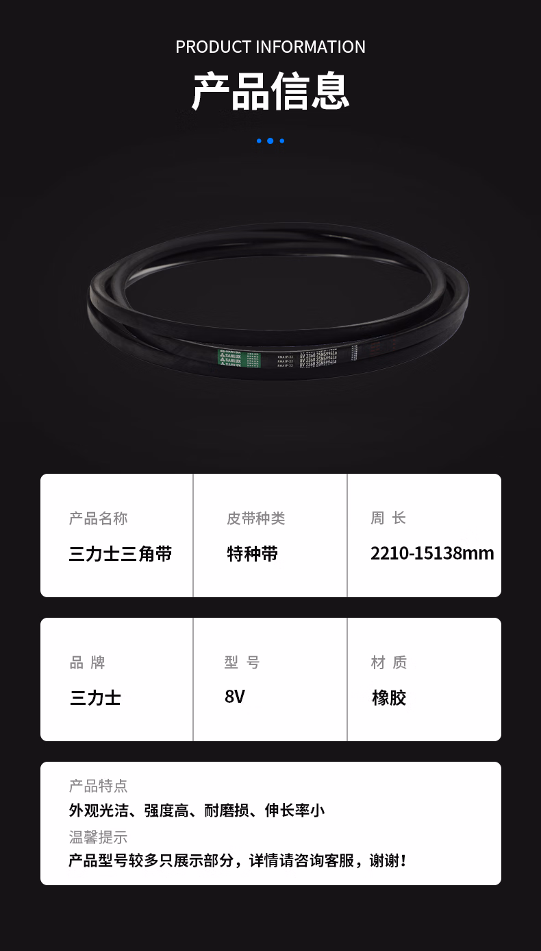 > 三力士通用三角特种带8V/25N机器工业3327-15138传动带 8V(25N)3350La