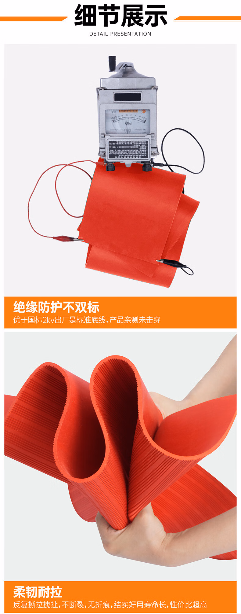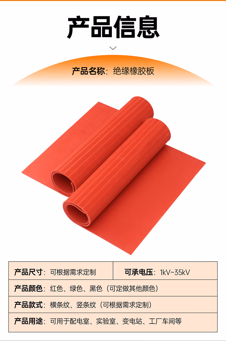 贝傅特高压绝缘胶垫配电室电房橡胶垫高压电箱柜新能源橡胶垫25KV红色条纹
