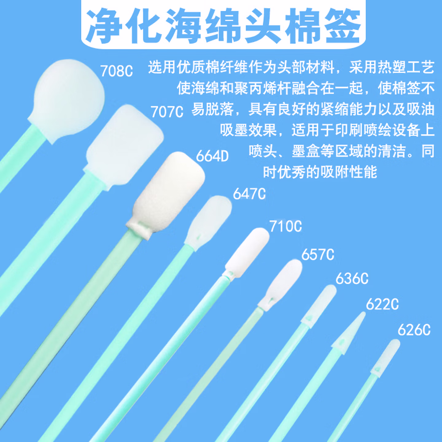 > 贝傅特 无尘棉签 激光镜片棉签无尘净化棉签工业布头棉棒 5英寸海绵大宽头(50支)707C