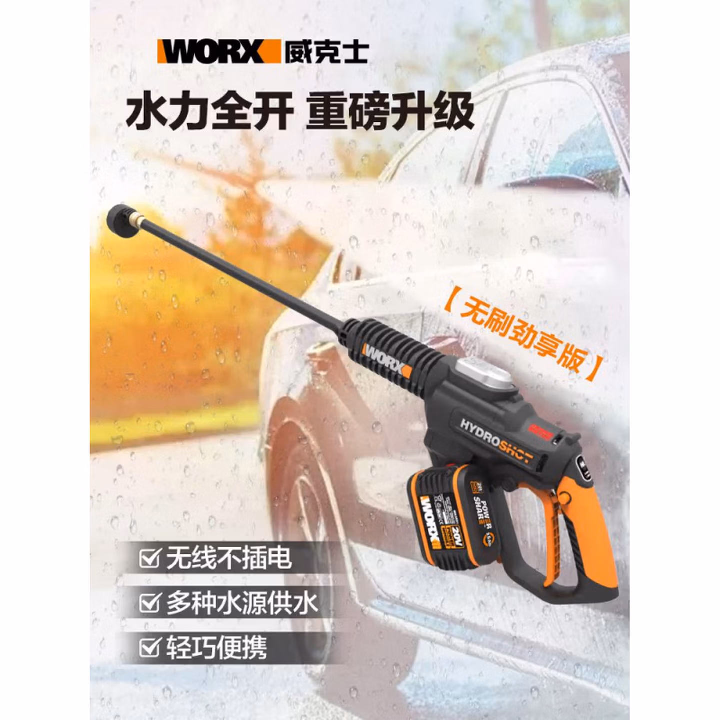 > 威克士(WORX)无线洗车机WG630E无刷高压清洗机家用充电洗车神器电动工具 WG630裸机【不含电池/充电器】