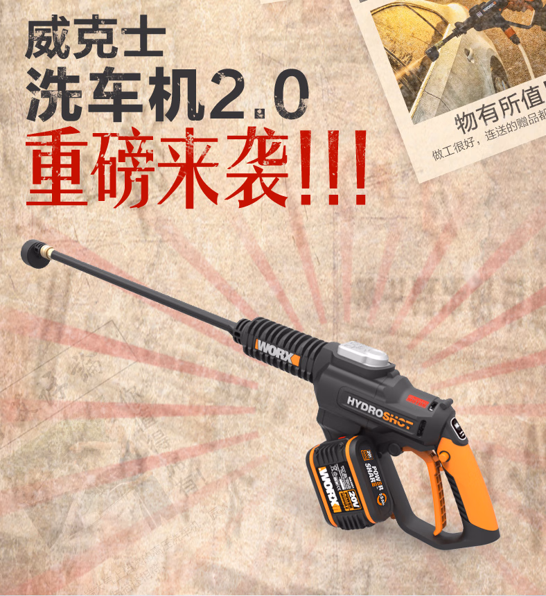 威克士(WORX)无线洗车机WG630E无刷高压清洗机家用充电洗车神器电动工具 WG630裸机【不含电池/充电器】