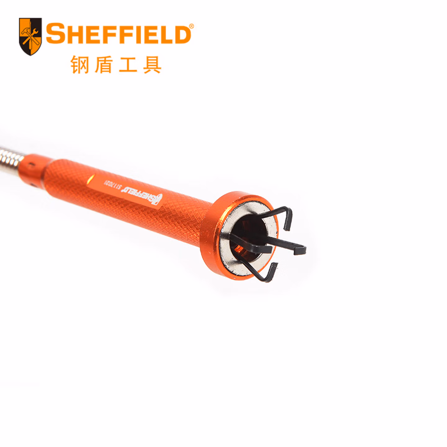 > 钢盾(SHEFFIEL)S117021柔性带灯磁性四爪捡拾器 360度弯曲取物夹抓取夹持器SD