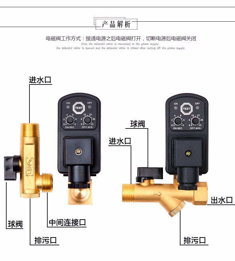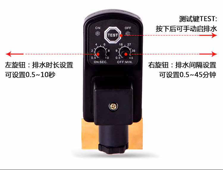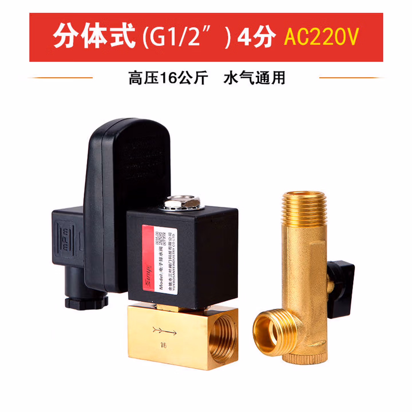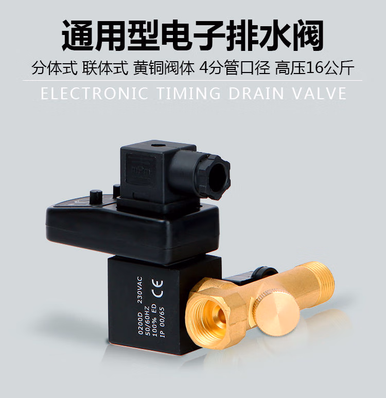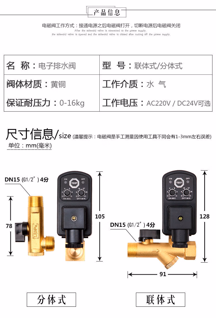 > 电子定时排水阀 自动空压机排水器电磁阀 4分 AC220V DC24V (联体式)AC220V