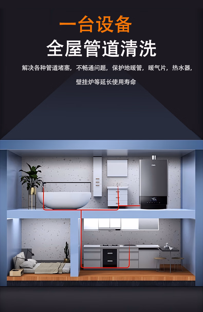 德克驰智能脉冲一体式地暖清洗机自来水管道清洗机暖气片热水器 K7地暖脉冲清洗机