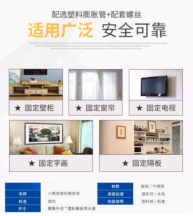 丹羊晴天小黄鱼膨胀螺丝螺栓钉加长尼龙塑料膨胀管塞自攻套装箱装M6M8M10 M6*100 (70包)
