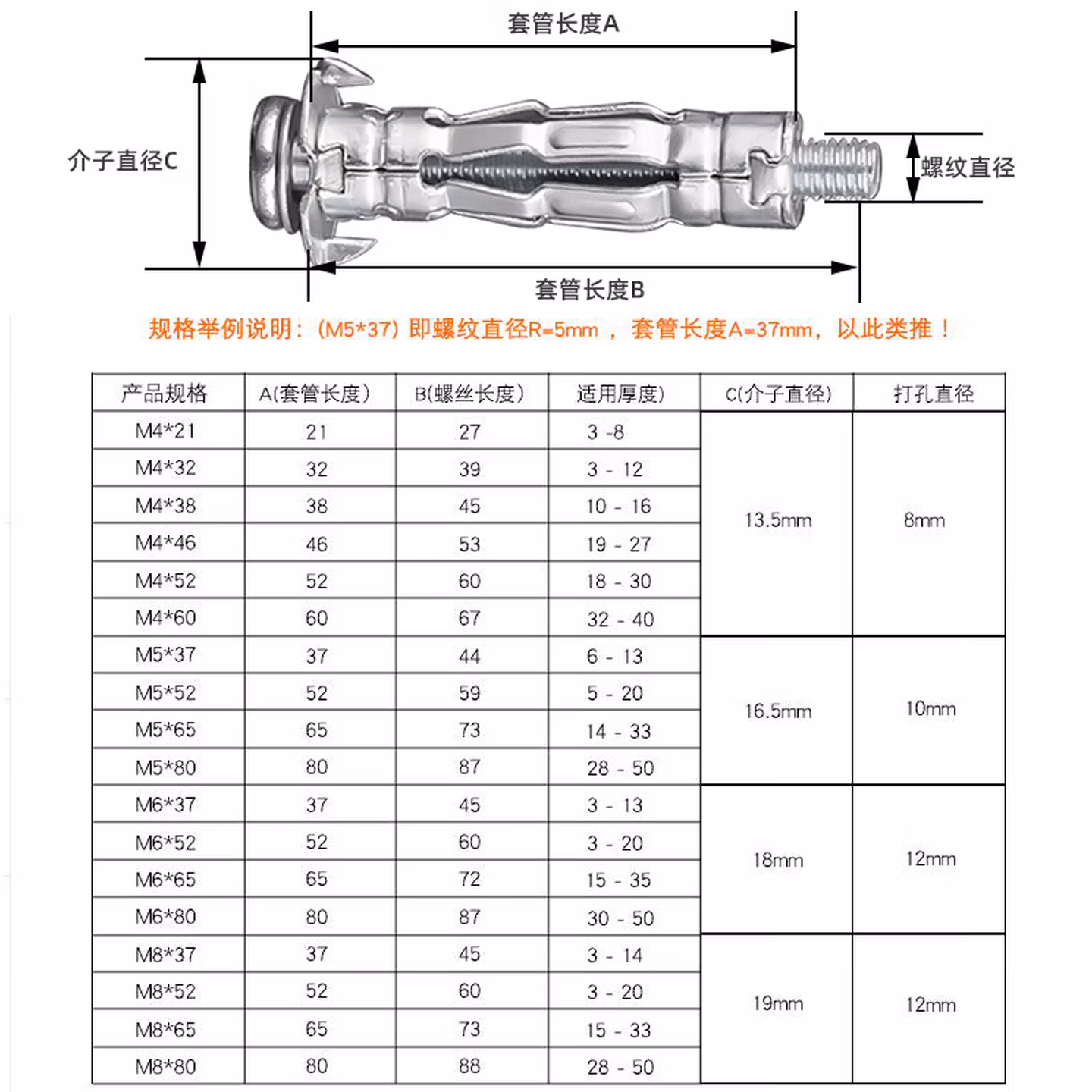 > 空心砖膨胀螺栓中空壁虎飞机型空心墙石膏板膨胀螺丝M4M5M6M8 M5*80 (10个) 〖厚度28-50mm〗