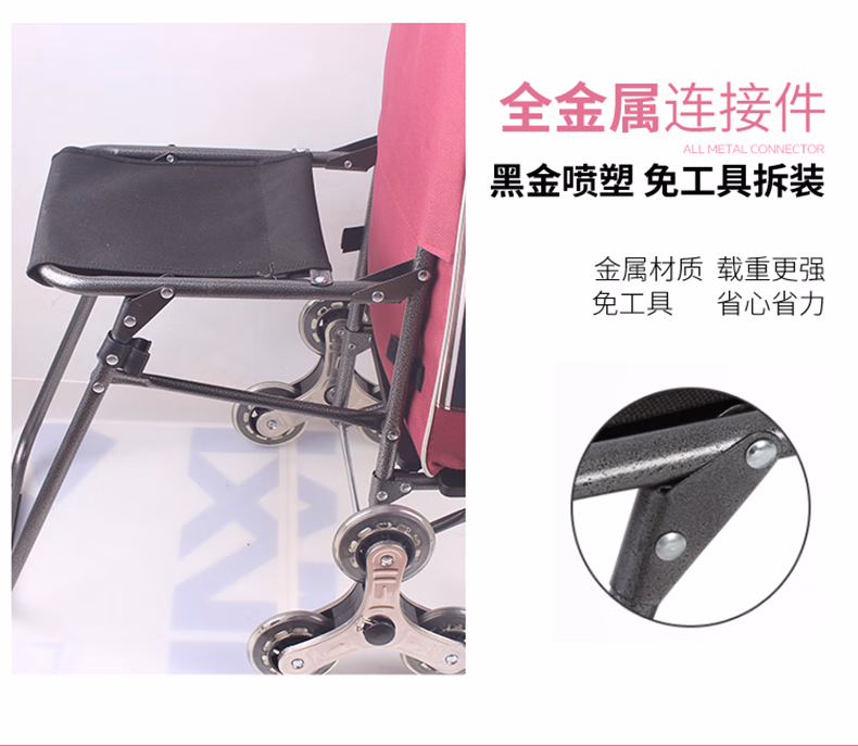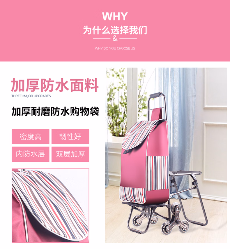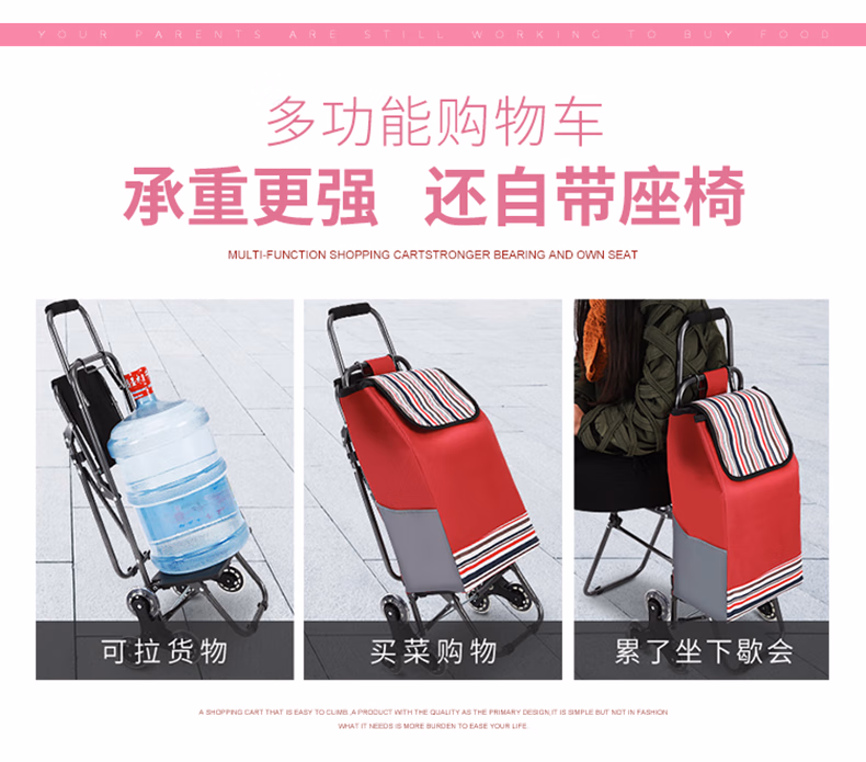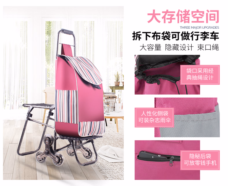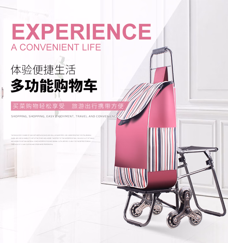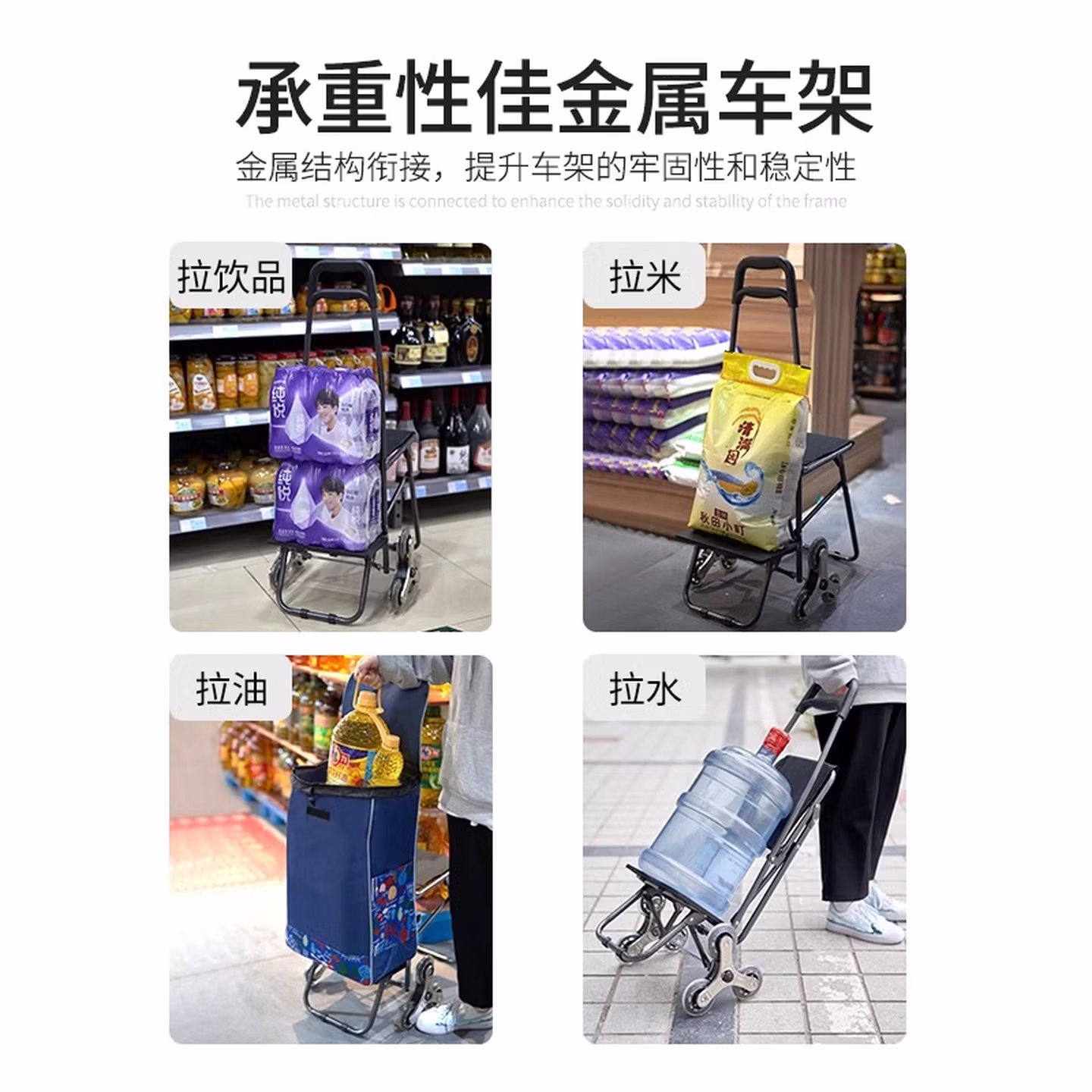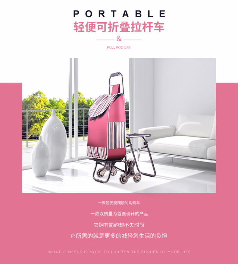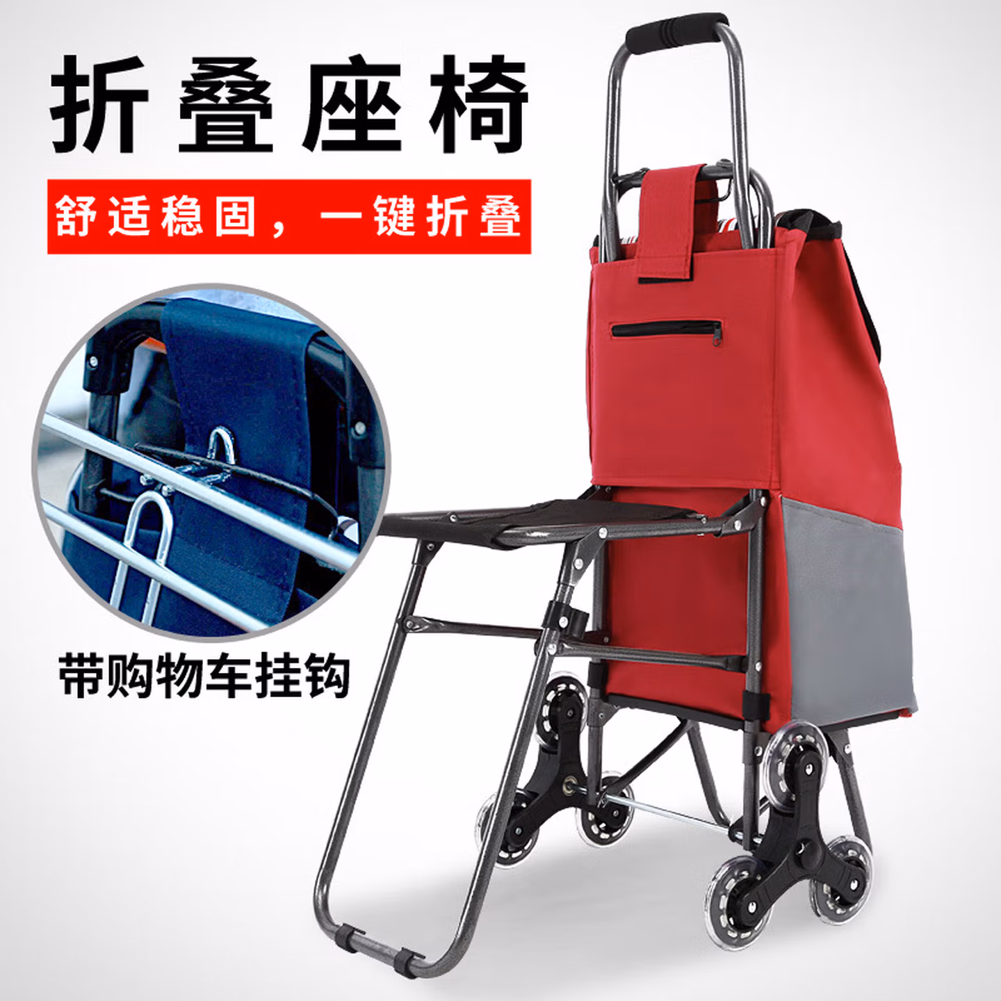 > 买菜手拉车可坐可爬楼老人买菜折叠购物车拖车推车可坐购物小拉车 折叠座椅【6轮爬楼款】紫红条