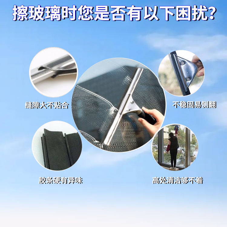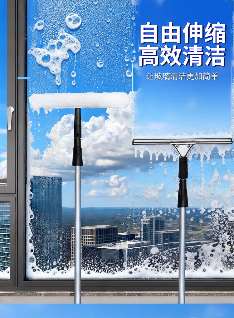 > 安达通 玻璃刮水器擦窗神器高层清洁多功能玻璃加长铝合金杆清洁工具 2.4米两节铝合金伸缩三件套