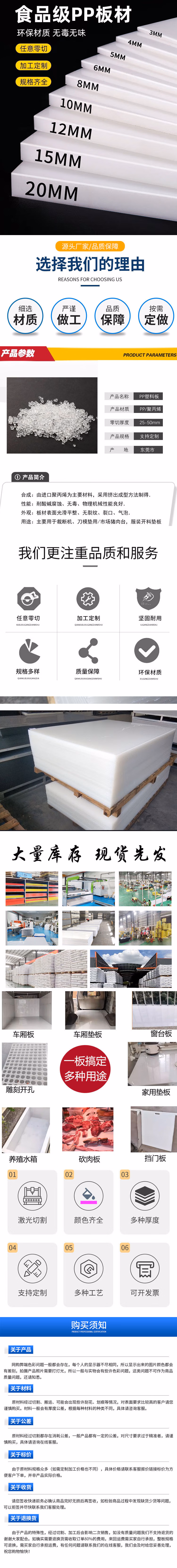 PP板白色塑料板隔板猪肉垫板食品级聚丙烯pe板硬板尼龙板 白色PP板5毫米厚;1300x2000mm