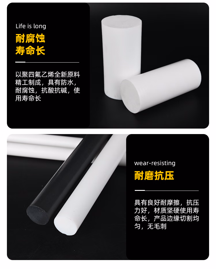 尊舍四氟棒聚四氟乙烯棒耐高温全新料加工定制PTFE棒塑料王棒铁氟龙棒 直径15*1000