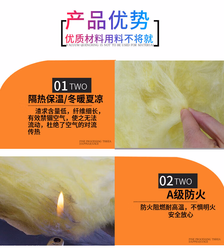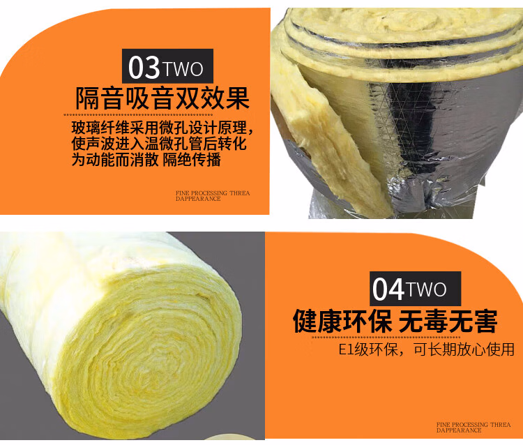 > 隔音棉玻璃棉保温棉卷毡50A级防火龙骨夹层隔热棉吸音KTV墙体 密度12K厚40mm光棉21平