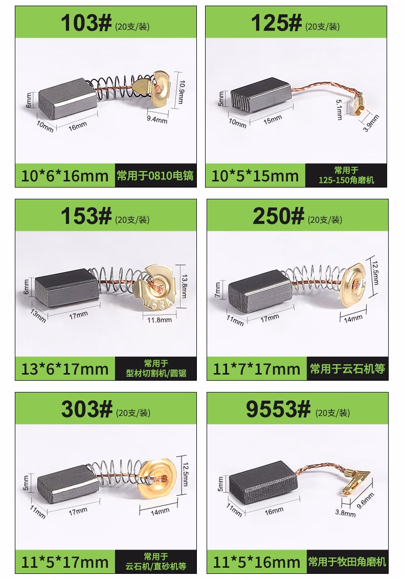 > 金赛骑 电机碳刷各种型号原装电刷大全电动工具角磨机电钻锤切割机磨光机配件通用 411#【20支装】
