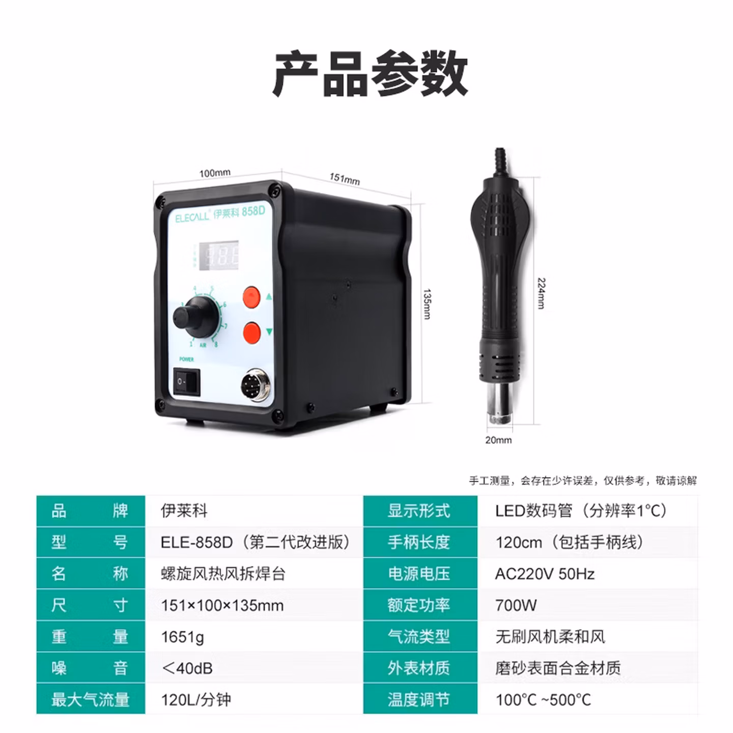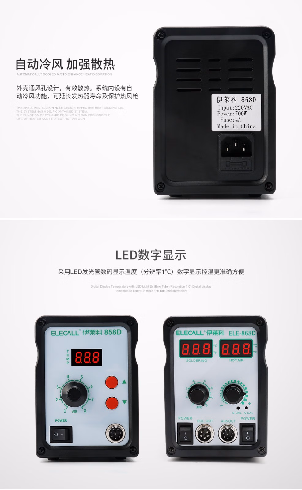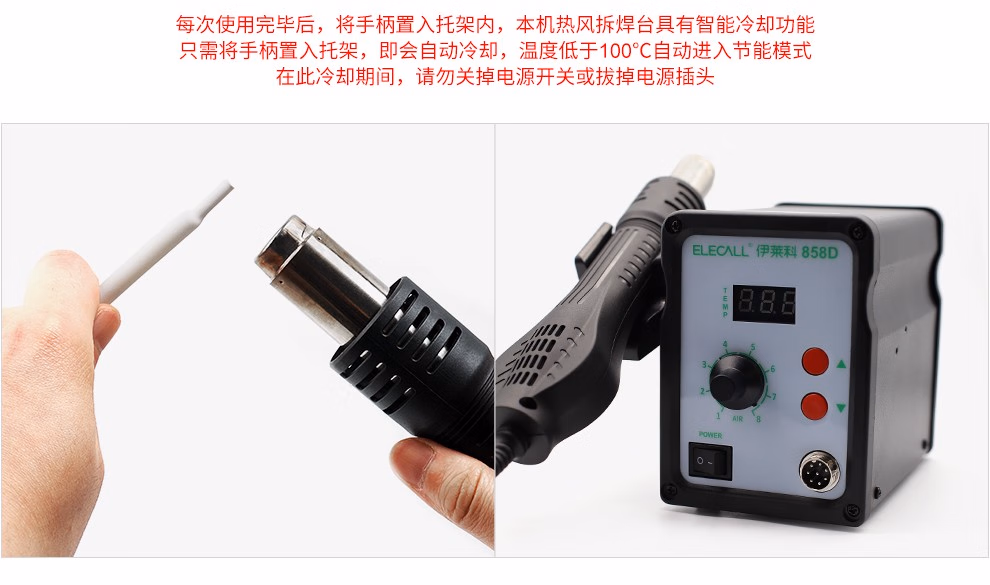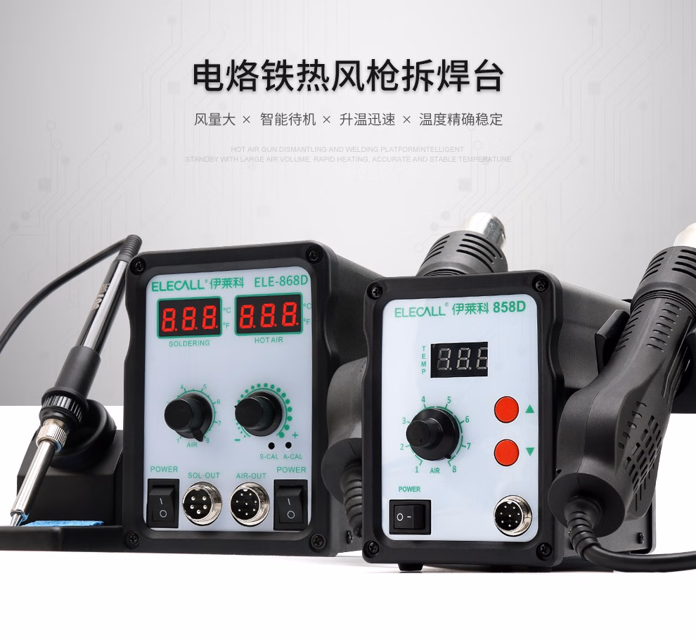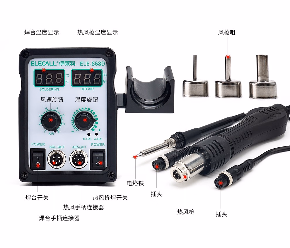 > 伊莱科(ELECALL)调温智能感应螺旋风热风枪可调节拆焊台二合一电烙铁热风拆焊台