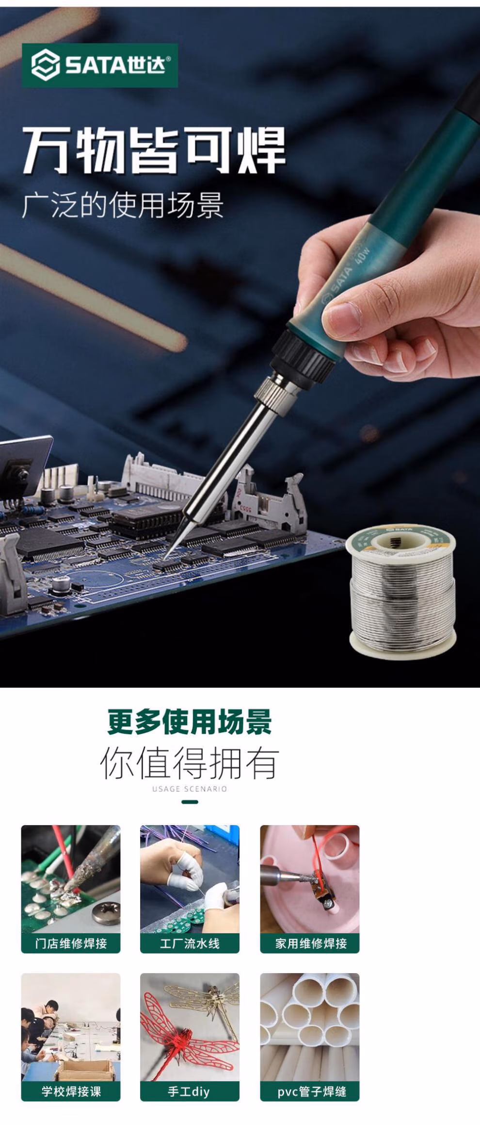 > 世达(SATA)电烙铁焊锡枪40/50/60W内外热式电焊笔家用小型电铬铁03200 30W外热式长寿款/03210维修