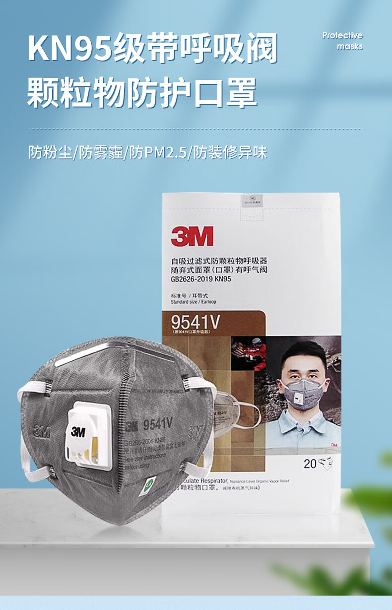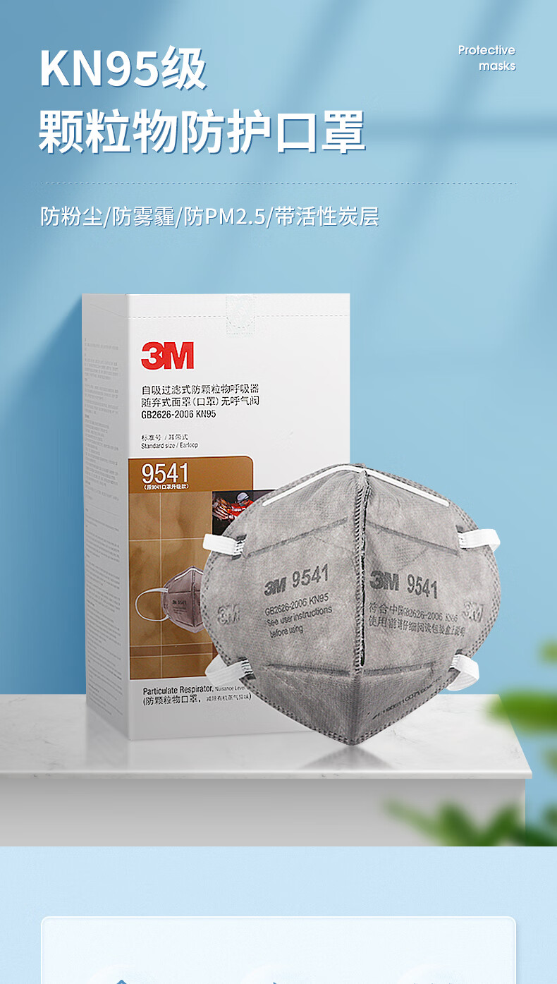 > 3M 9542 防雾霾防尘口罩工业粉尘PM2.5防花粉KN95男女通用成人立体口罩独立装 25个/盒
