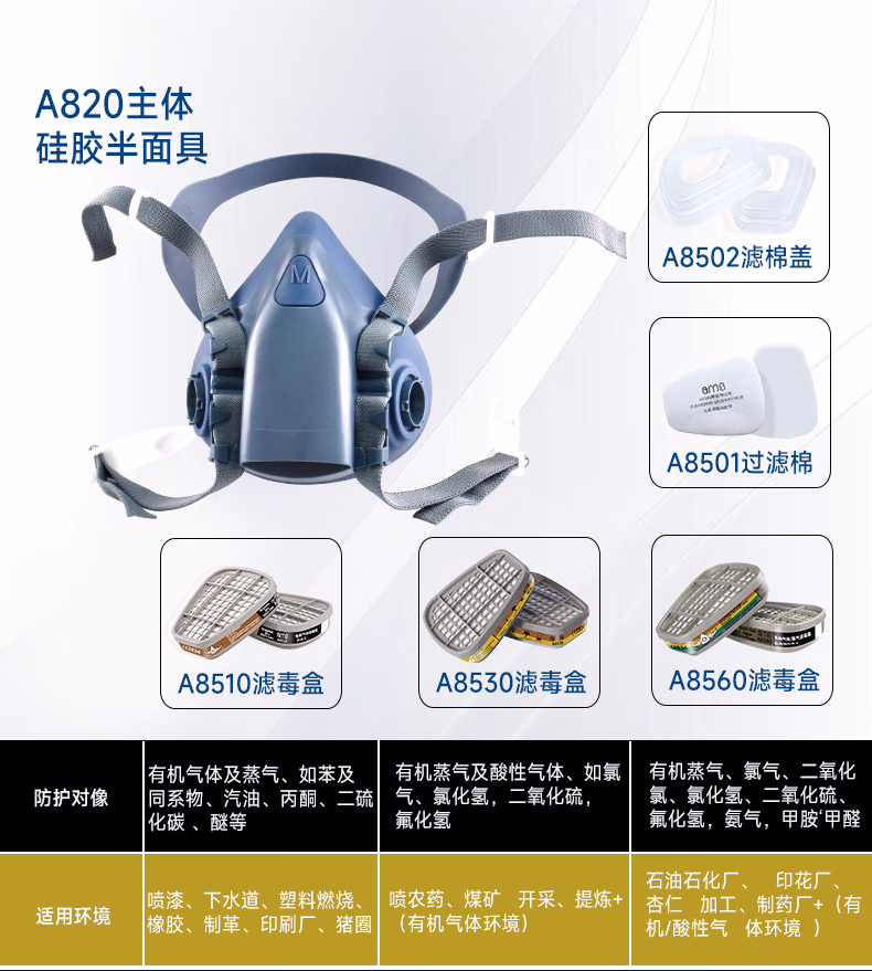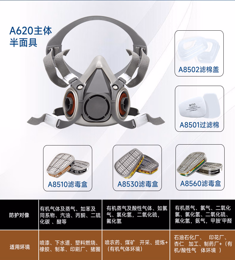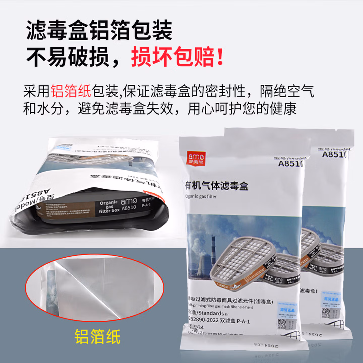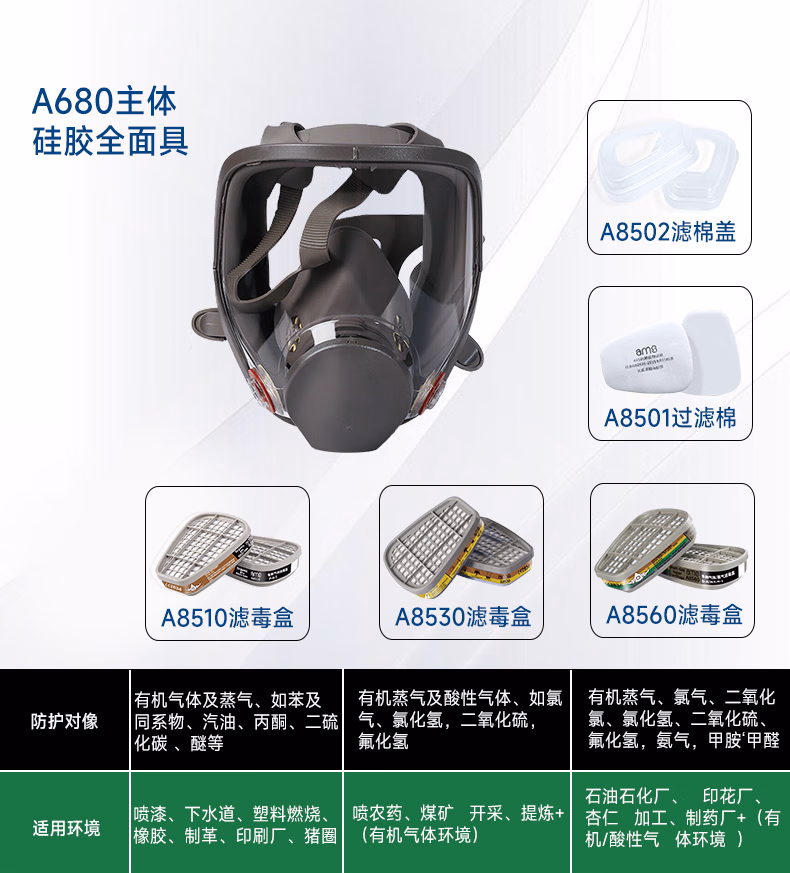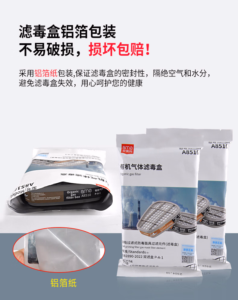 > 安美尚(ams)防毒面具滤毒盒防SO2/NO2/HCl等酸性气体打农药煤矿开采活性炭防护工厂防甲醛专用面罩原装正品护目镜