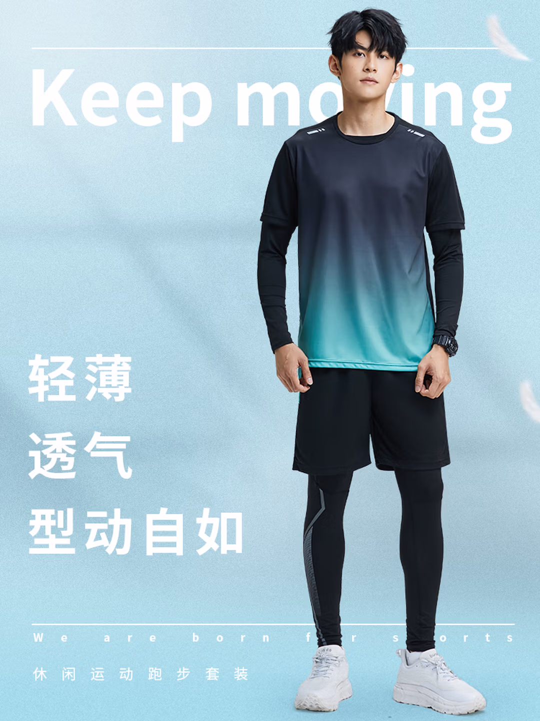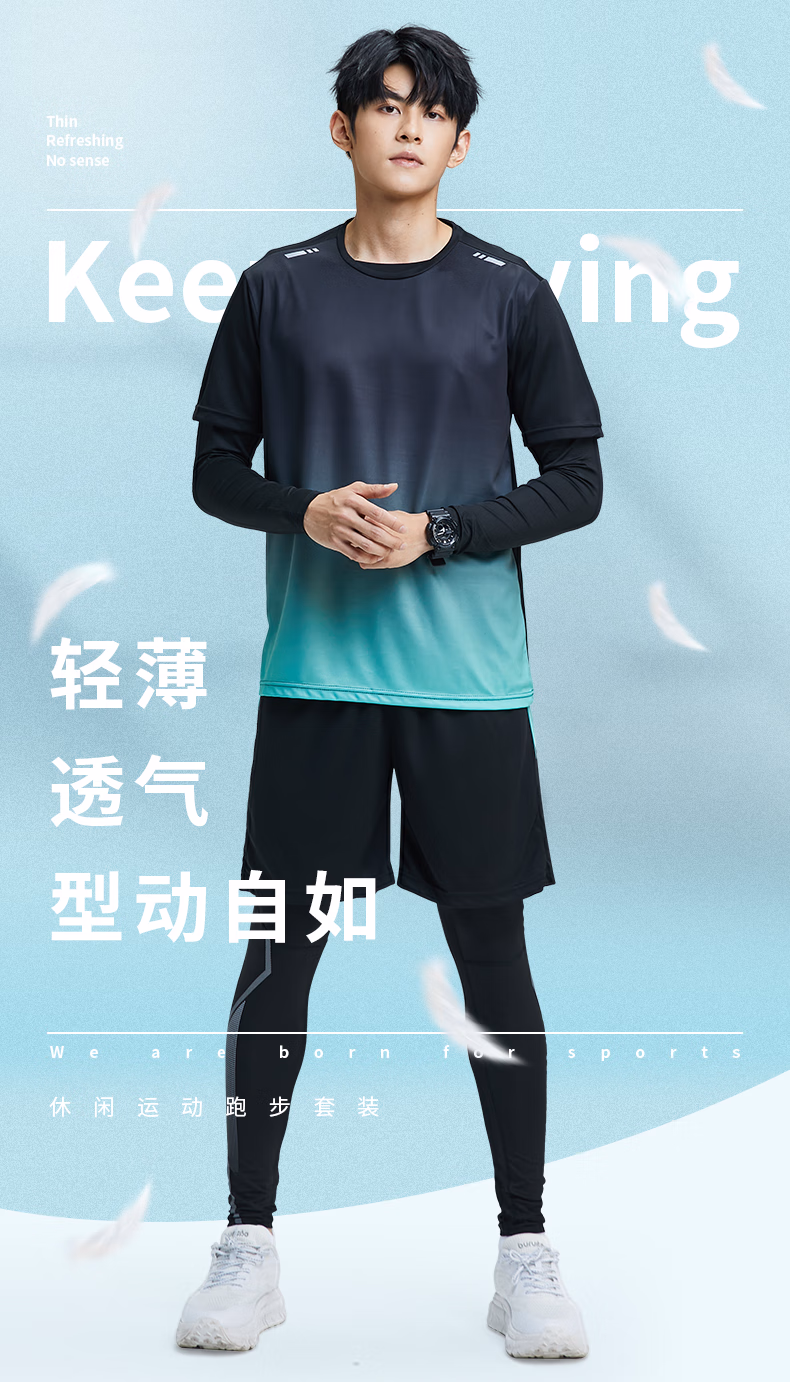 > 步锐特(BURUITE)运动套装男跑步装备晨跑健身服骑行训练紧身速干衣羽毛球服春秋季