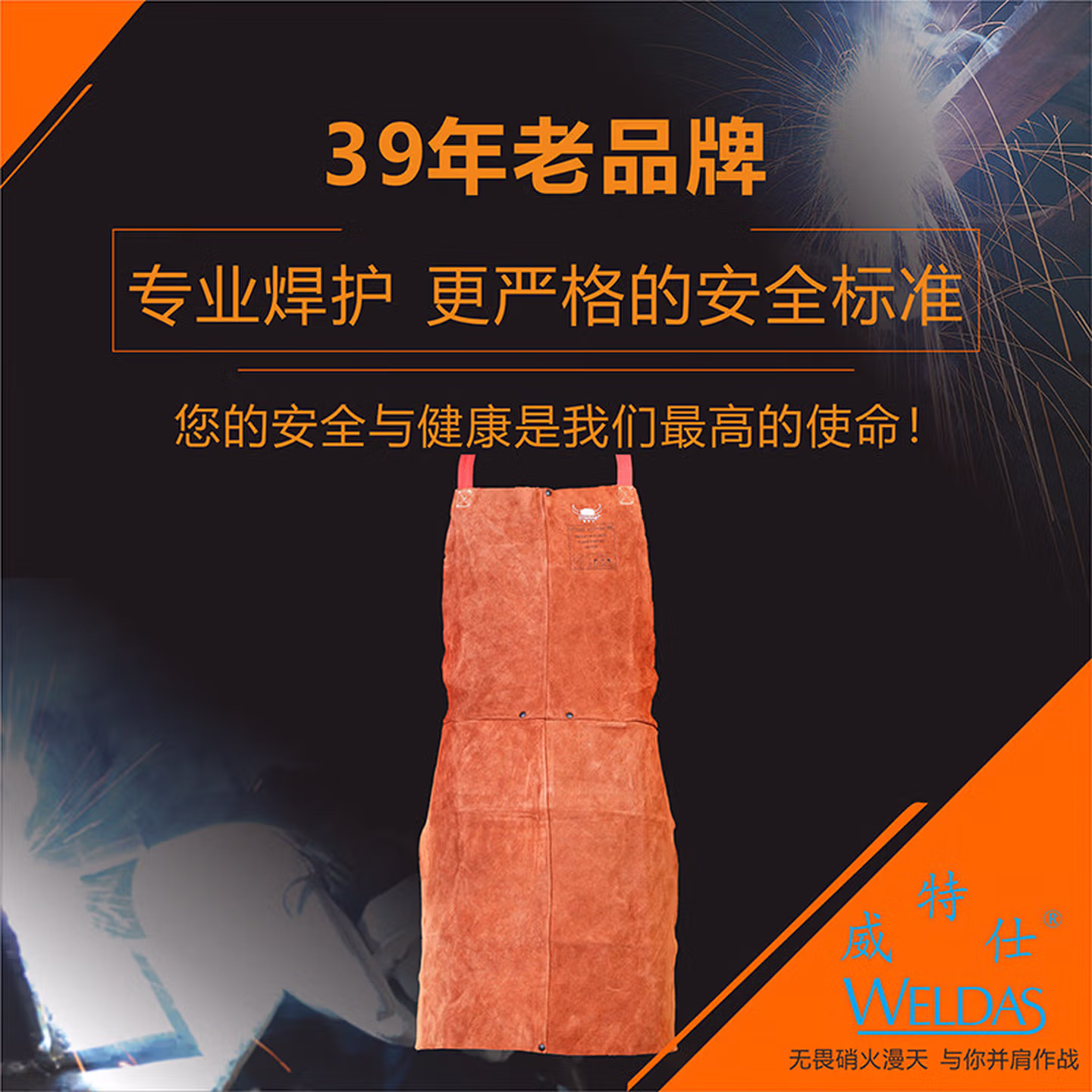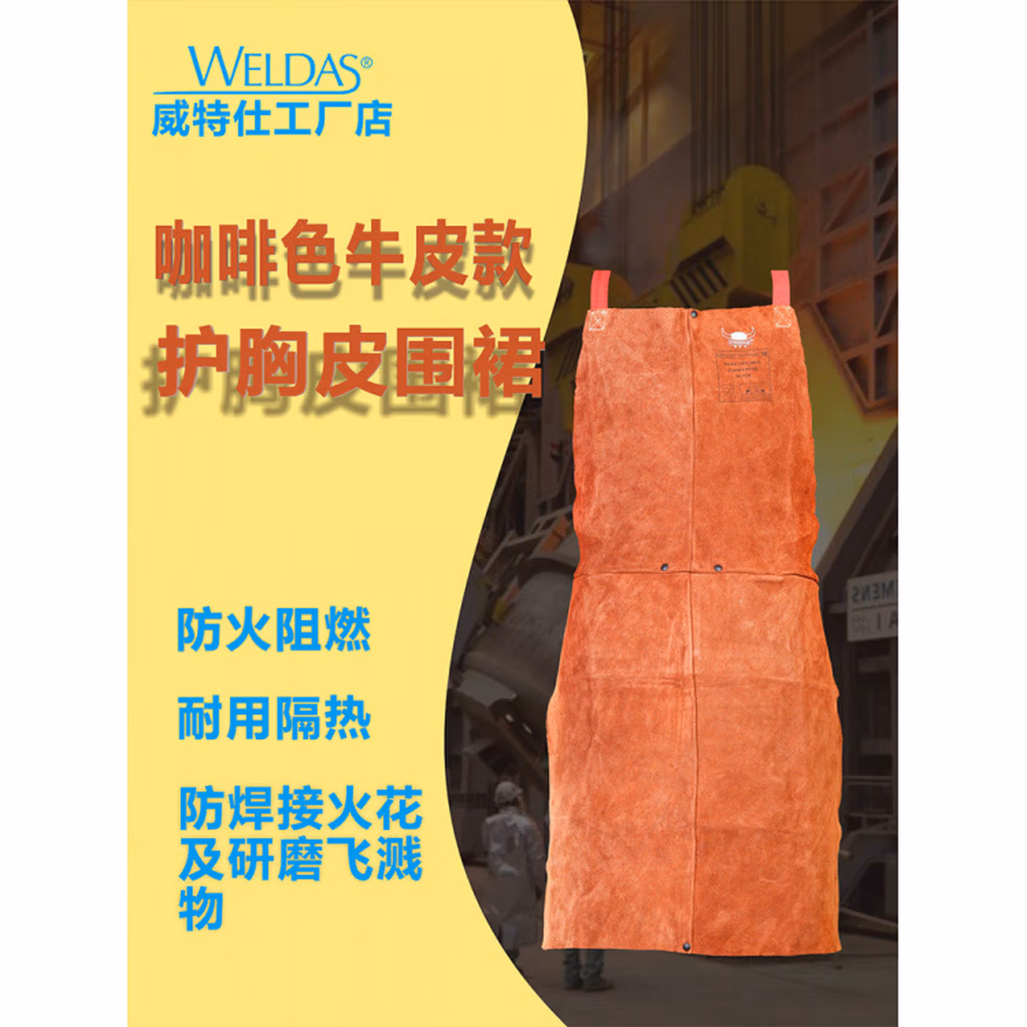 威特仕焊接焊工电焊护胸皮围裙防烫隔热耐磨围裙44-7136(91厘米长)