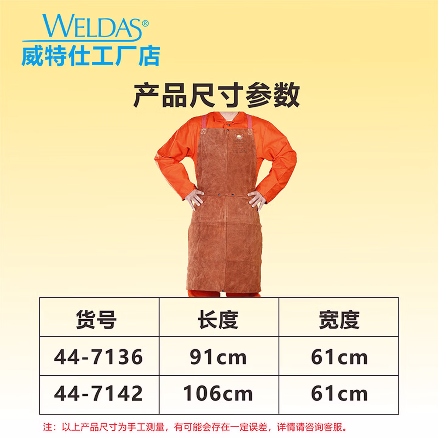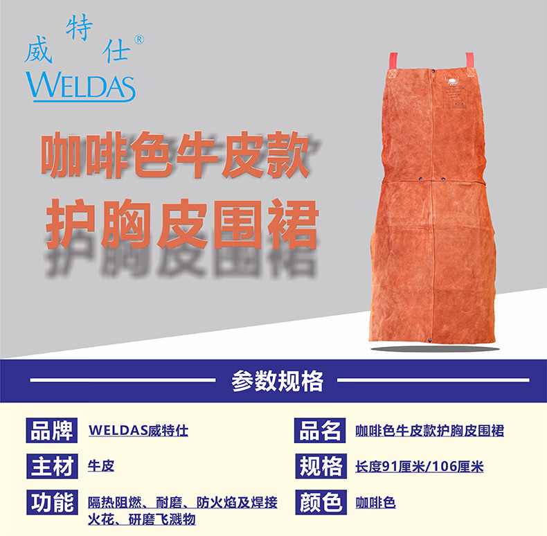> 威特仕焊接焊工电焊护胸皮围裙防烫隔热耐磨围裙44-7136(91厘米长)