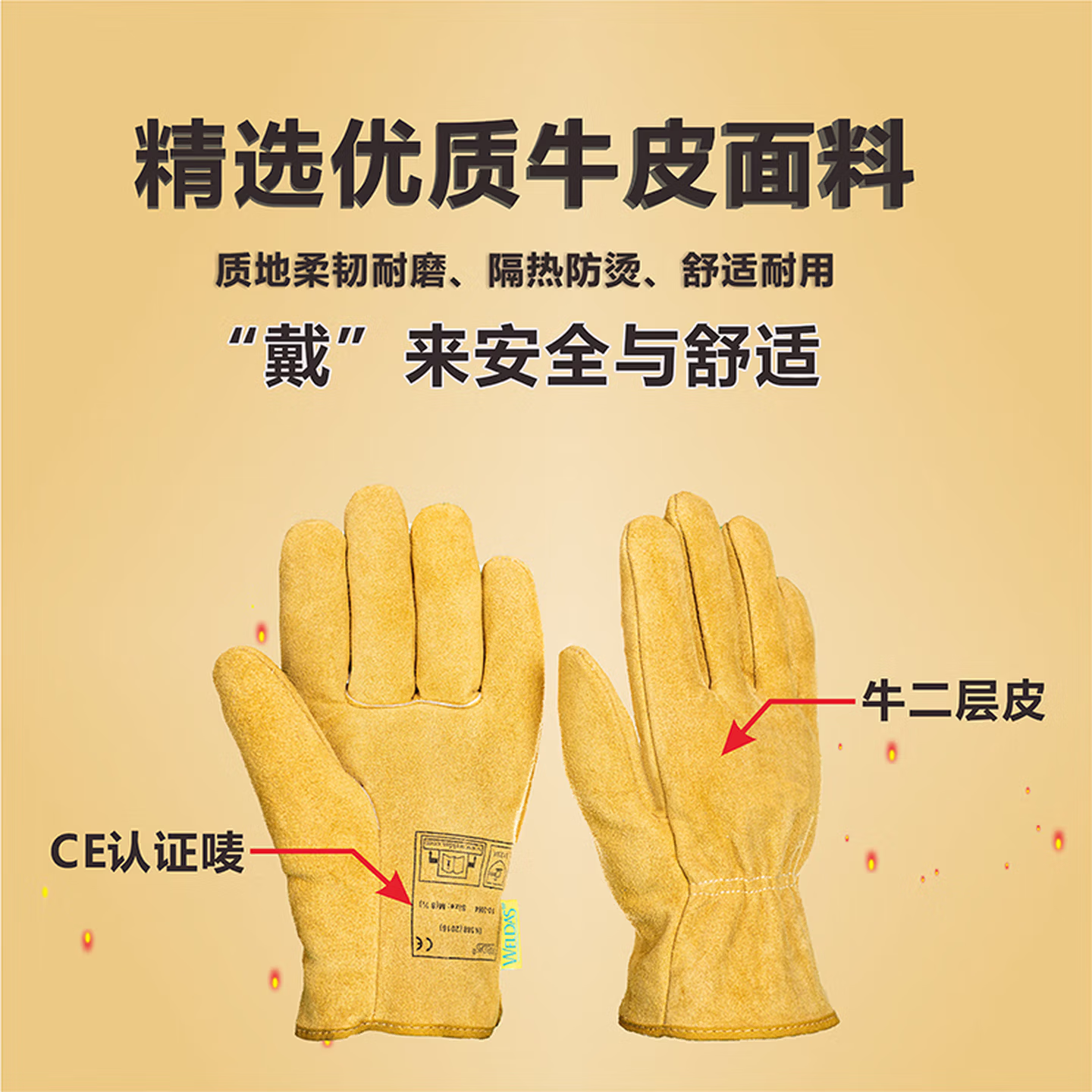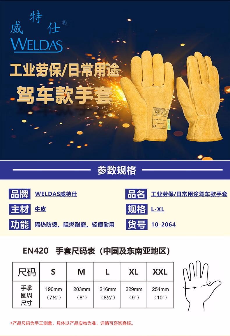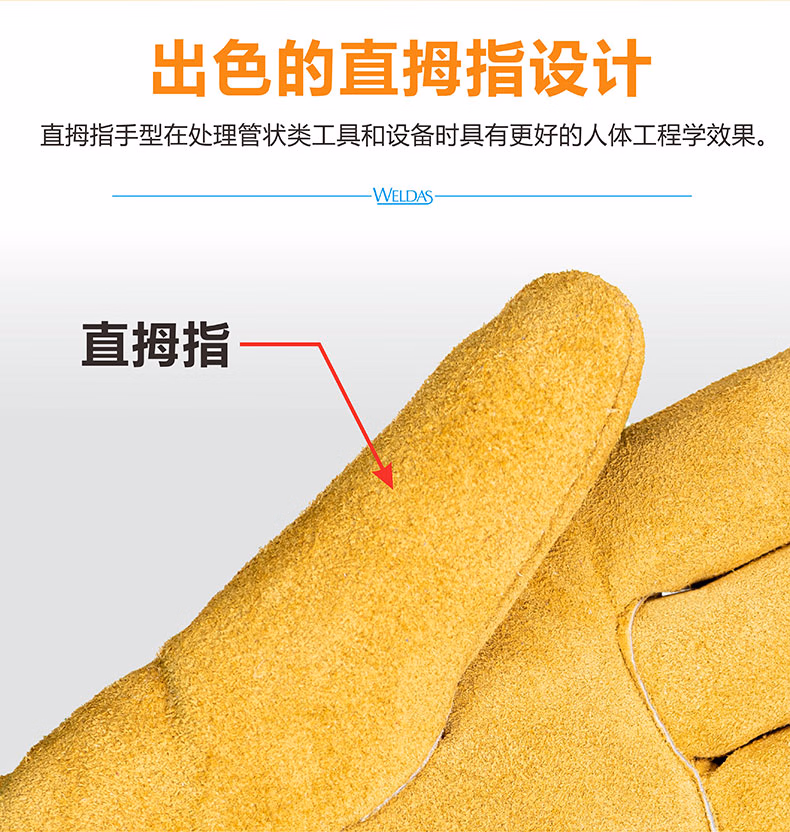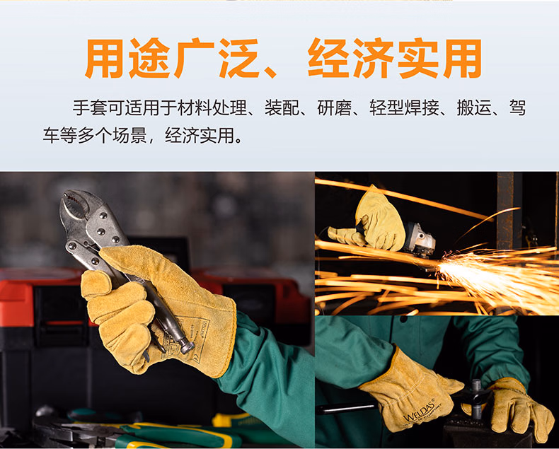 威特仕WELDAS电焊烧焊手套牛皮多功能驾车劳保研磨手套防护耐磨牛皮手套10-2064XL 单层牛皮防护手套