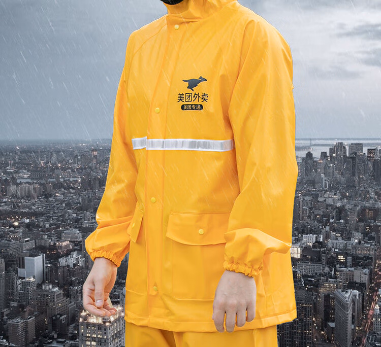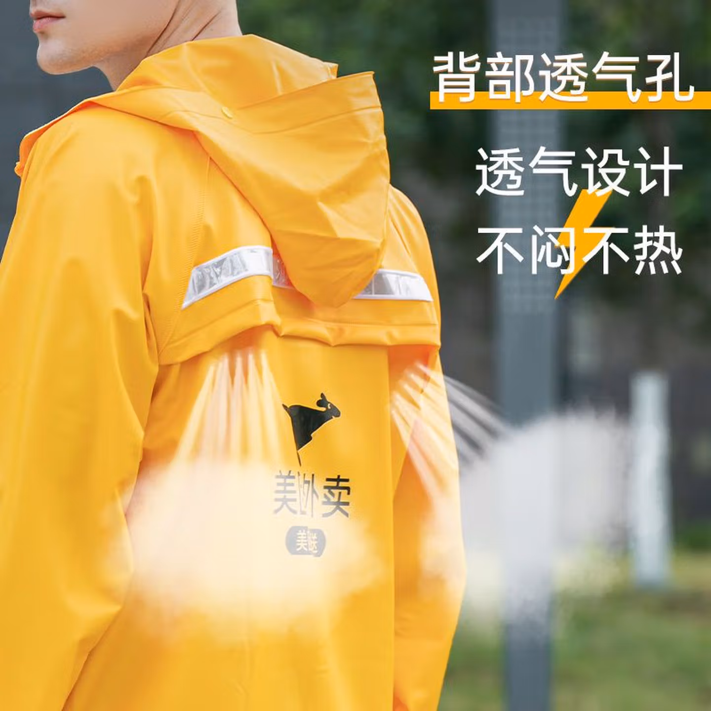 > 赛乐透跑外卖雨衣美团骑手外卖员男女分体套装防水电动车透气防暴雨 美团雨衣套装带logo+帽檐 M