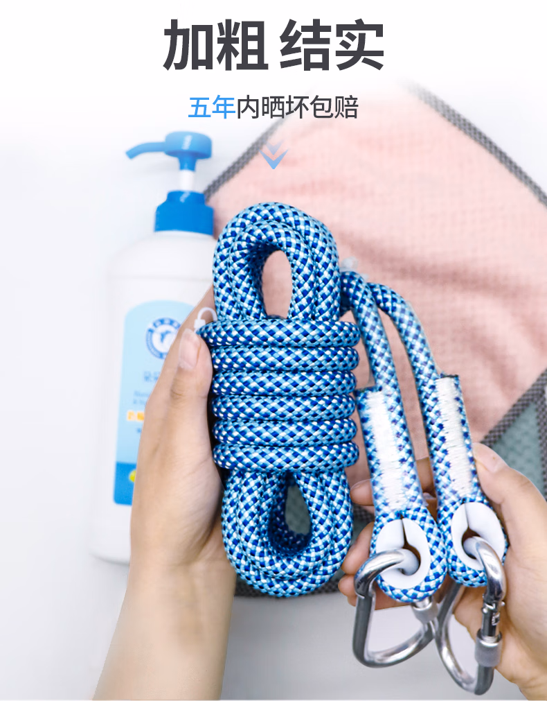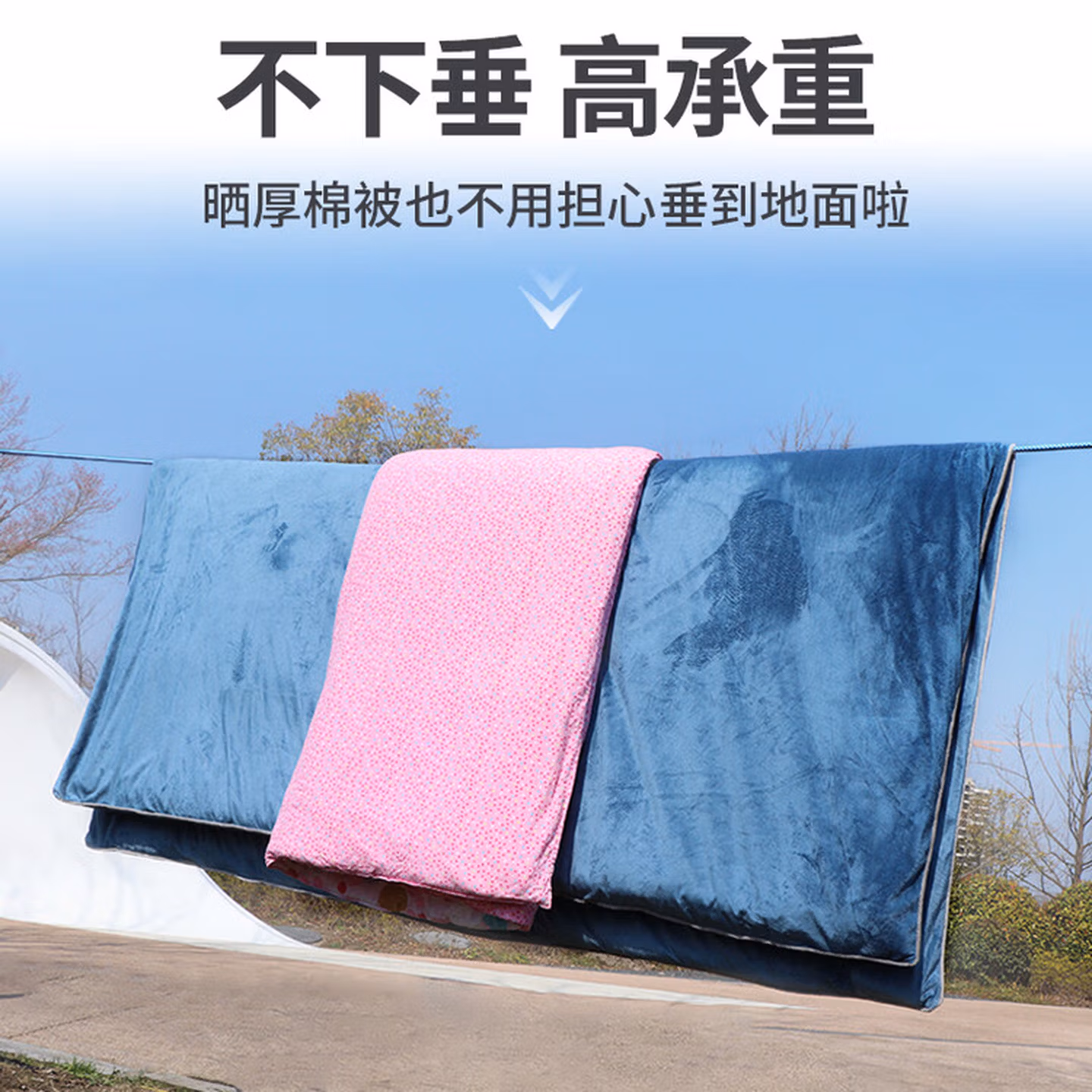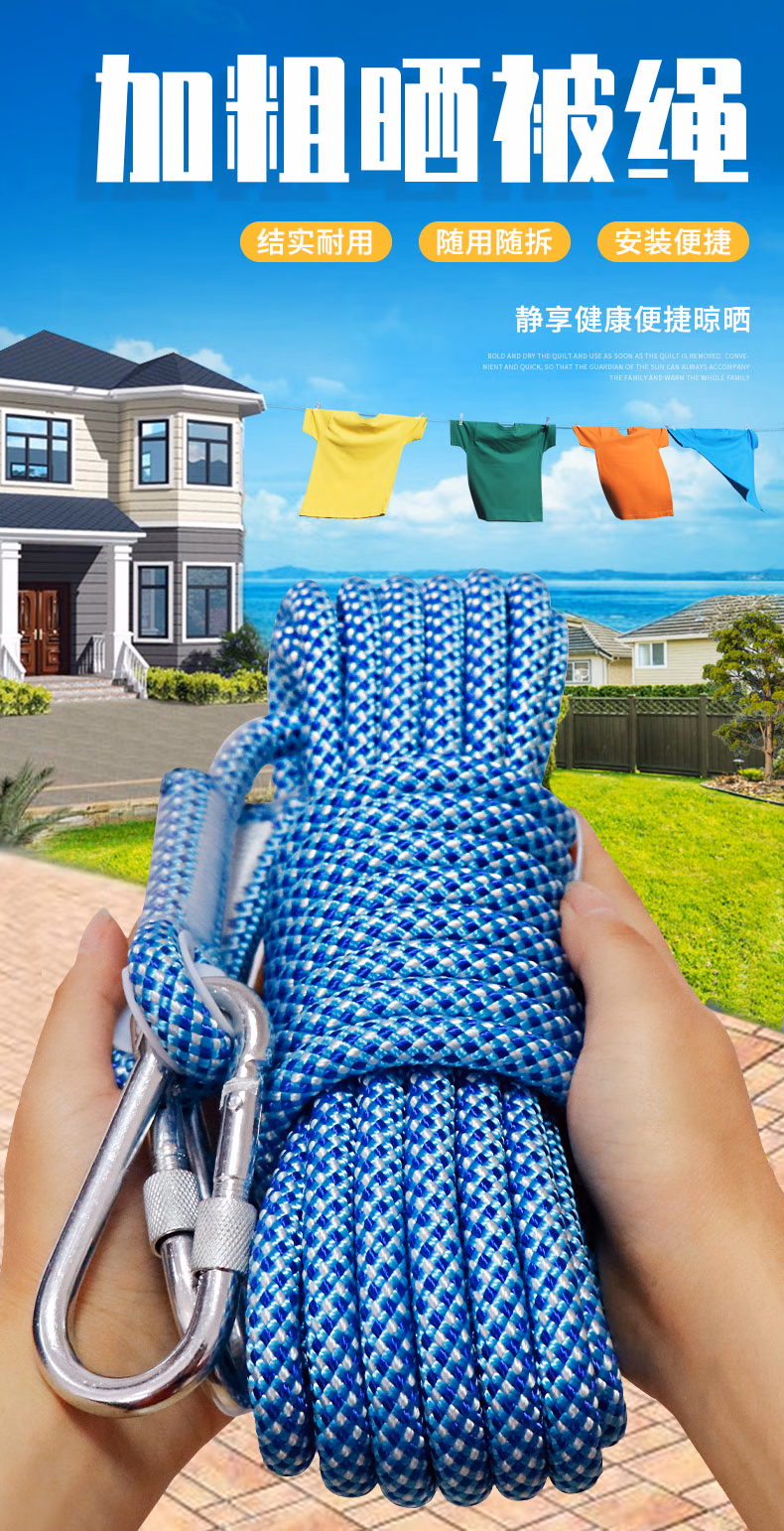 > 晾衣绳室外晒被子加粗防滑防风户外凉衣绳神器挂晒晾晒衣服的绳子 10.5mm湖蓝色5米