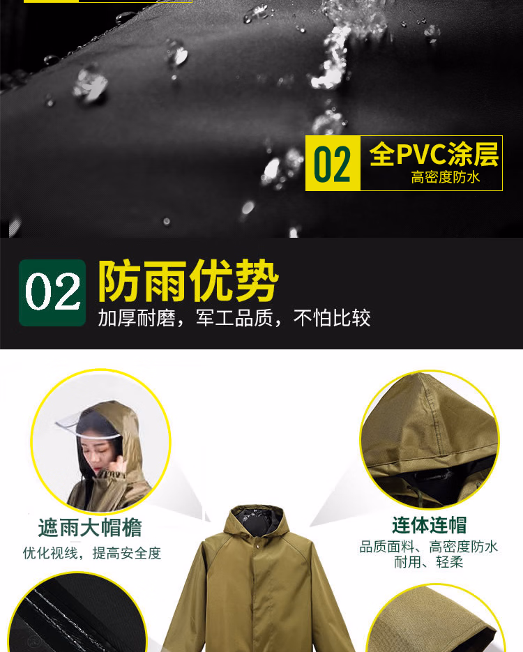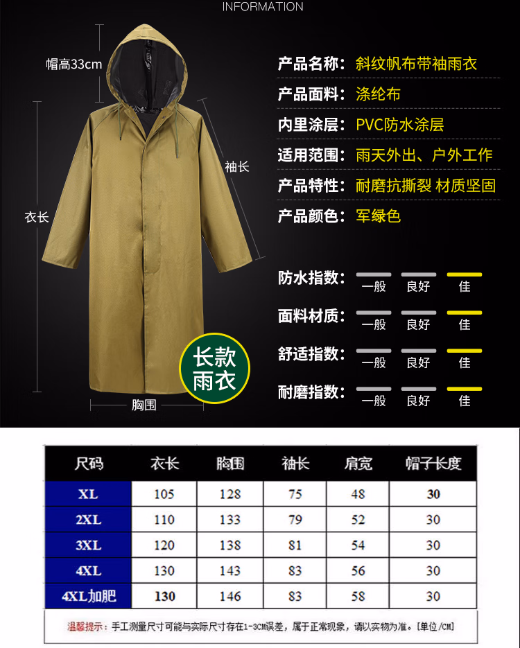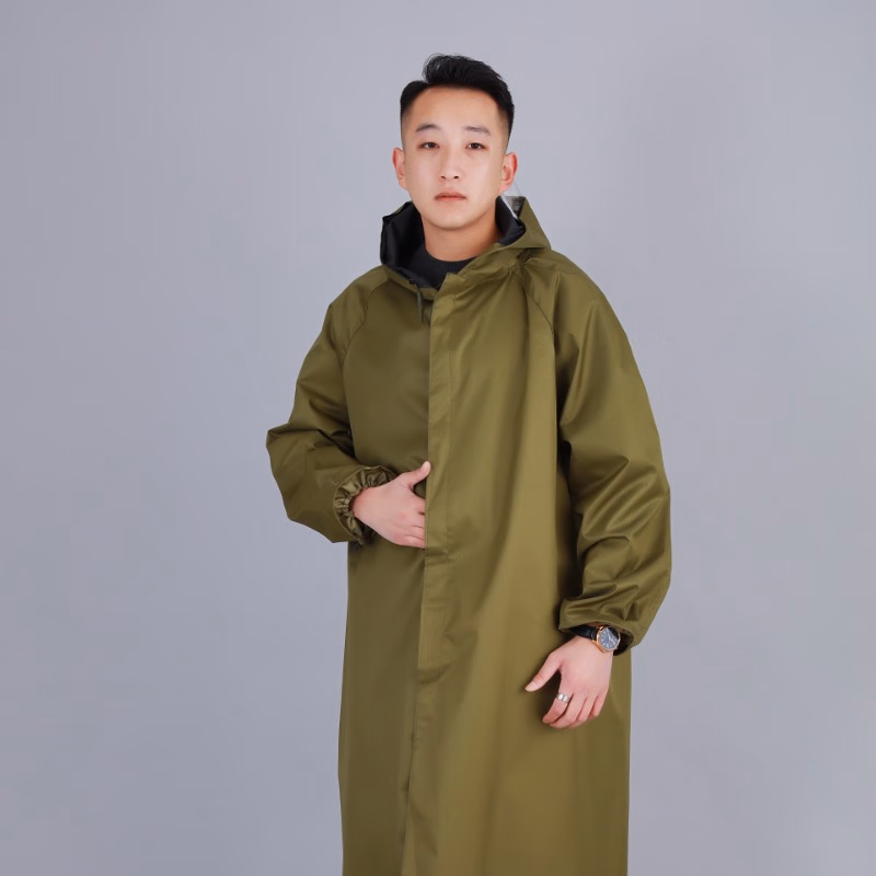 > 防暴雨连体长款雨衣加厚牛津布分外劳保雨披外套体骑行登山户 帆布绿色[钮扣款直袖口] XL