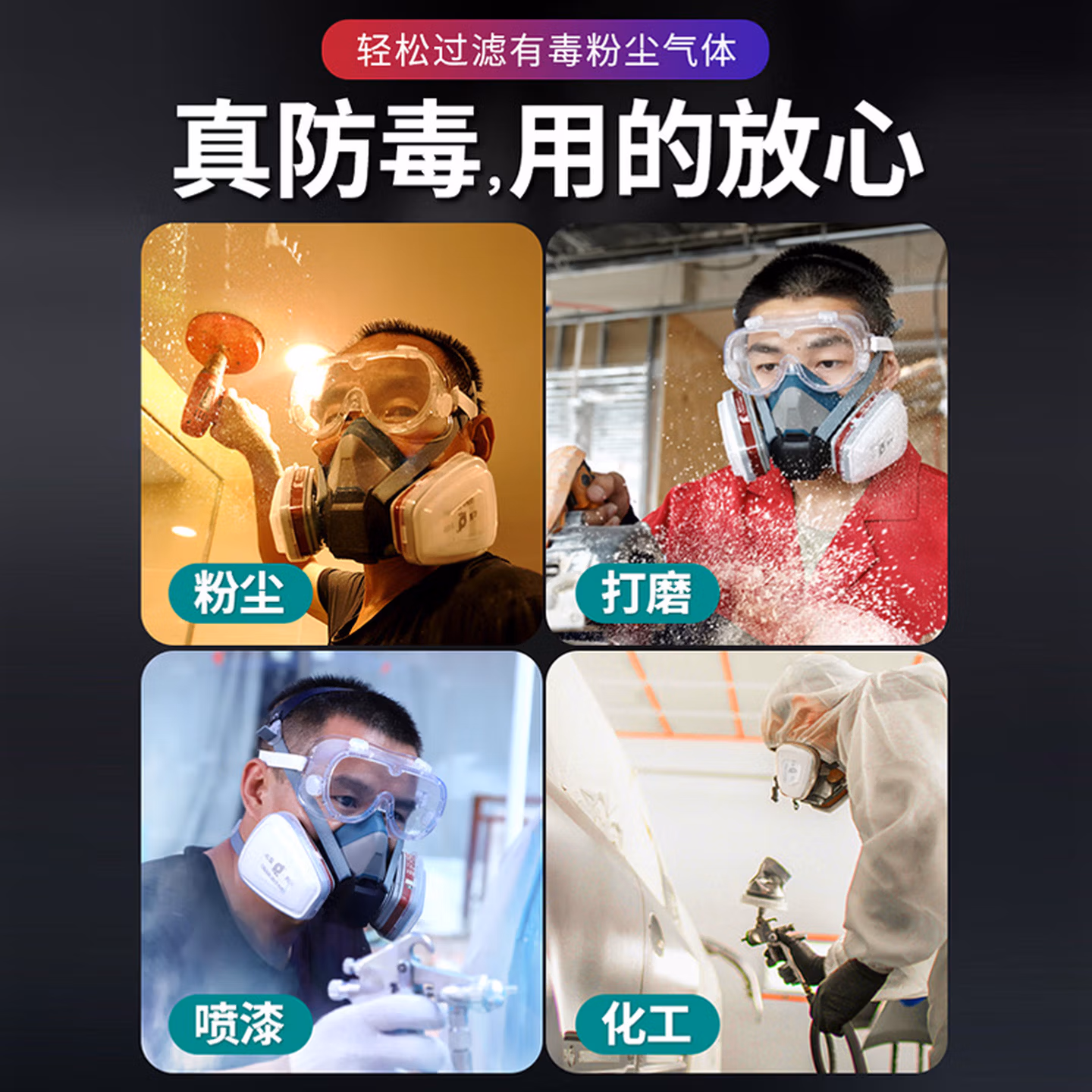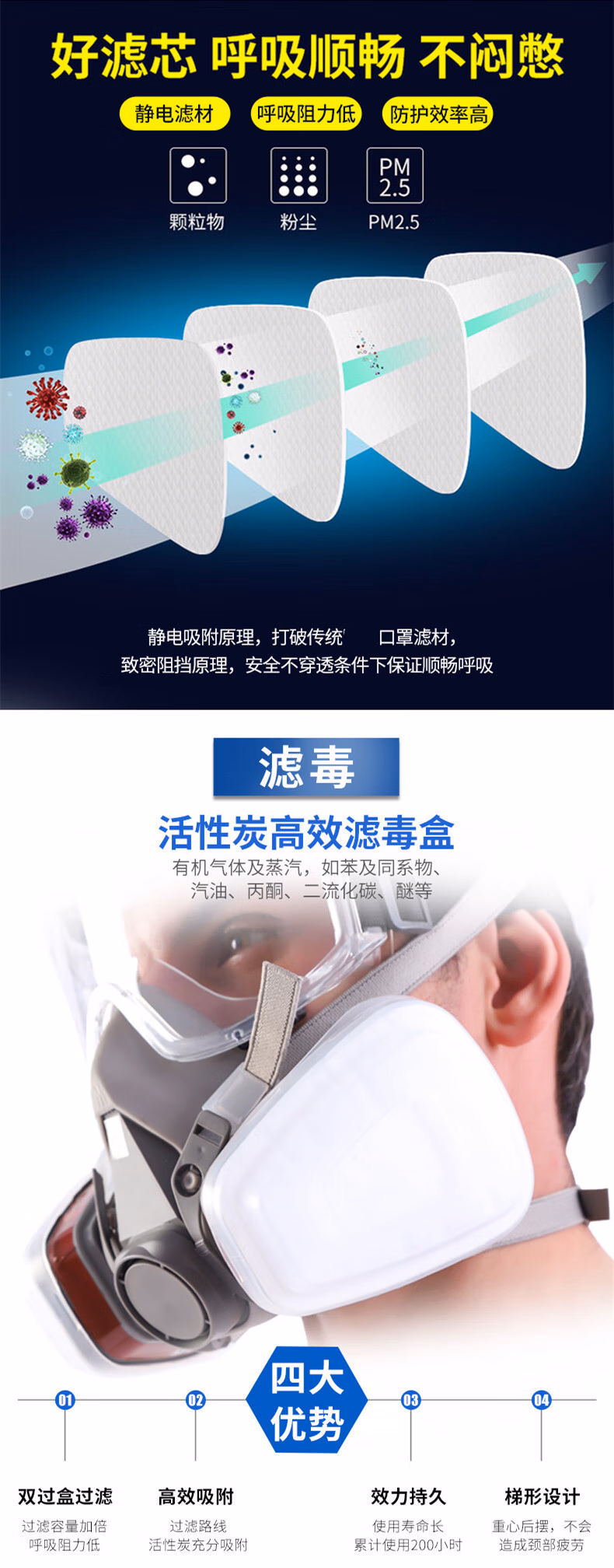 > 贝傅特 防毒面具 防有毒气体活性炭吸附甲醛防尘口罩工业粉尘喷漆打农药面具 6200面具7件套+50片棉