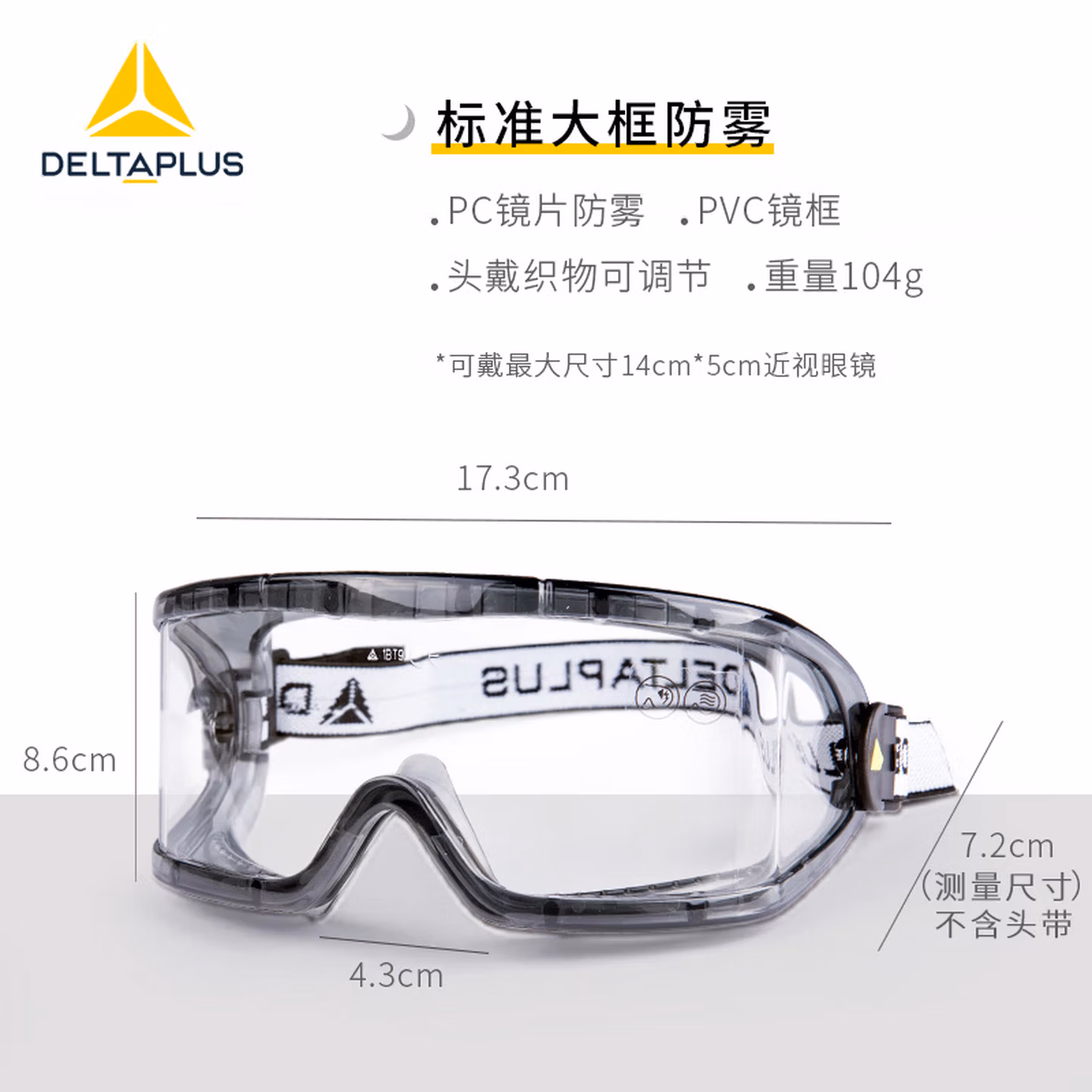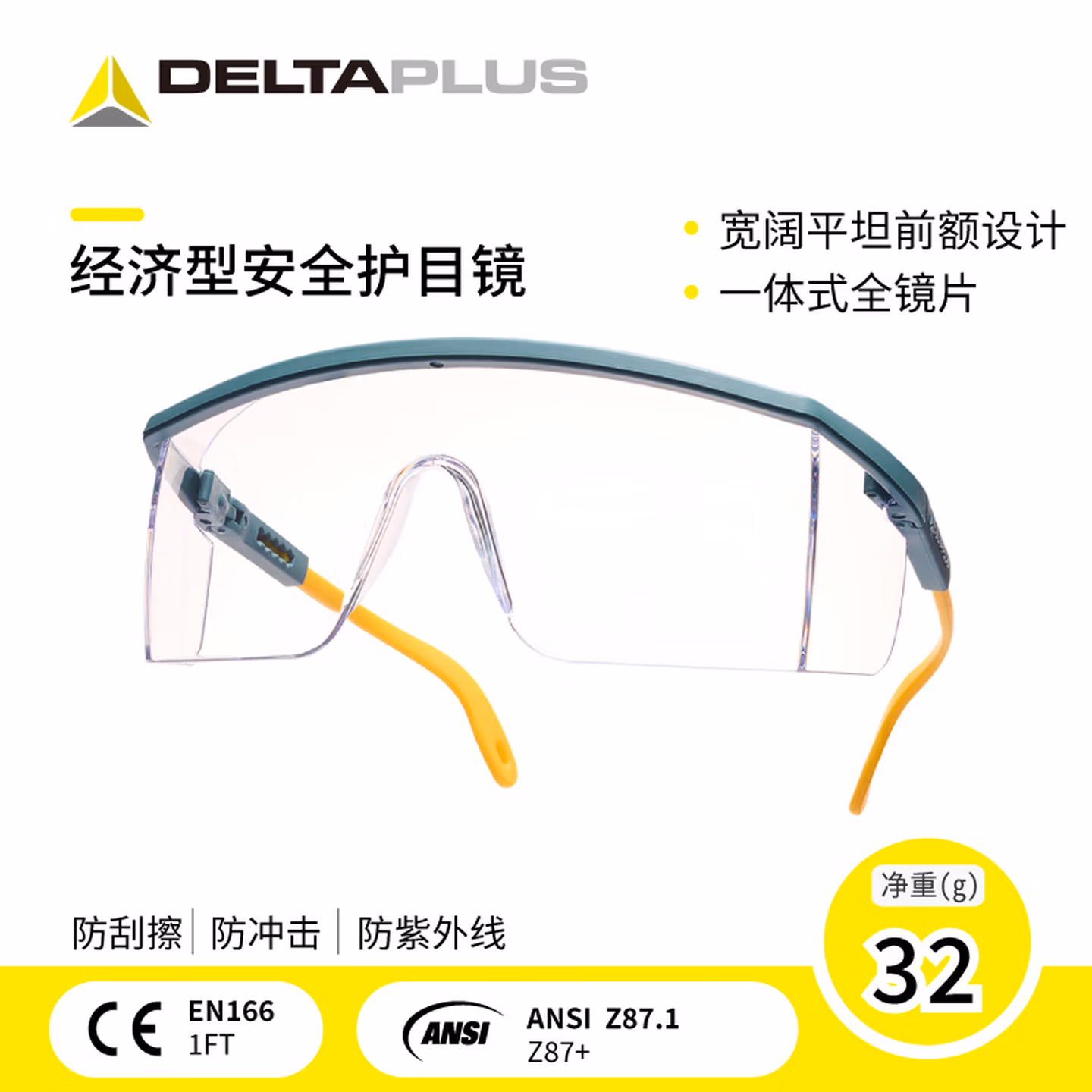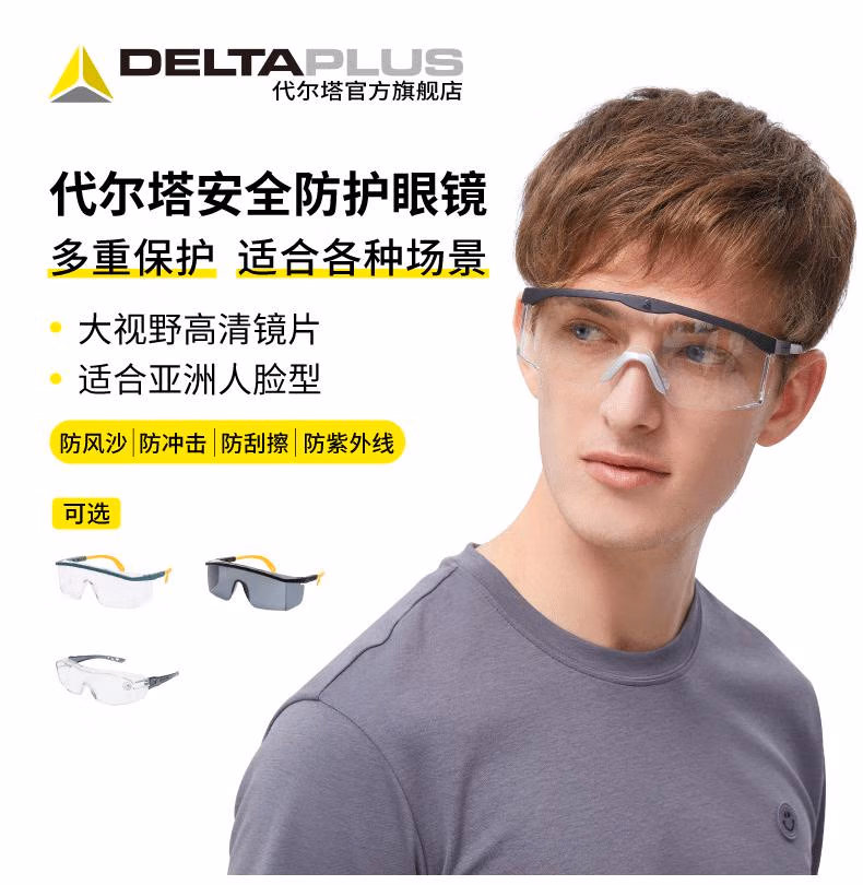 > 代尔塔护目镜男士防风沙防尘骑行打磨防飞溅飞沫工业防护眼镜镜女 114透明访客眼镜