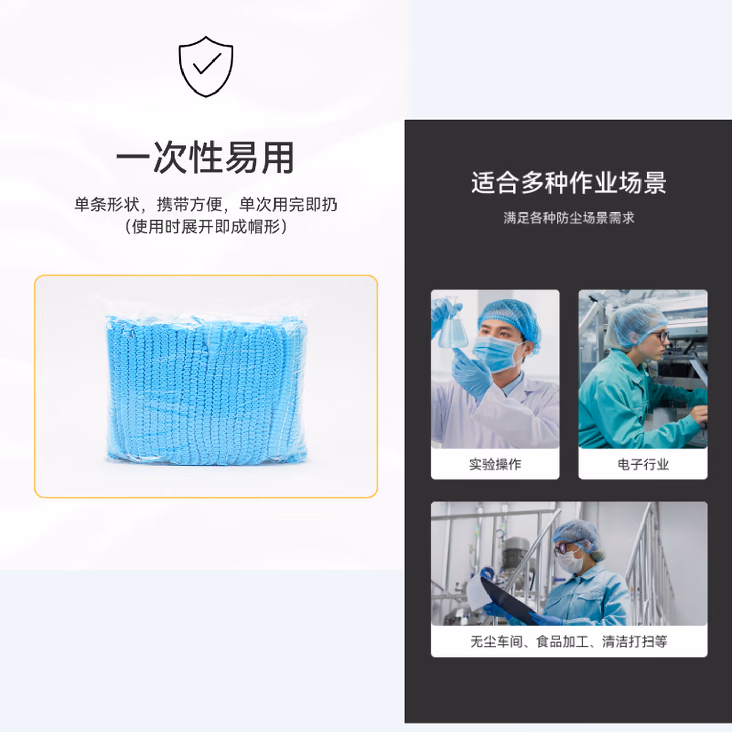 > 舜选一次性头套帽子防尘无尘帽SHW100无纺布厨房厨师网帽发套条形隔离帽白色100只/袋19英寸270克