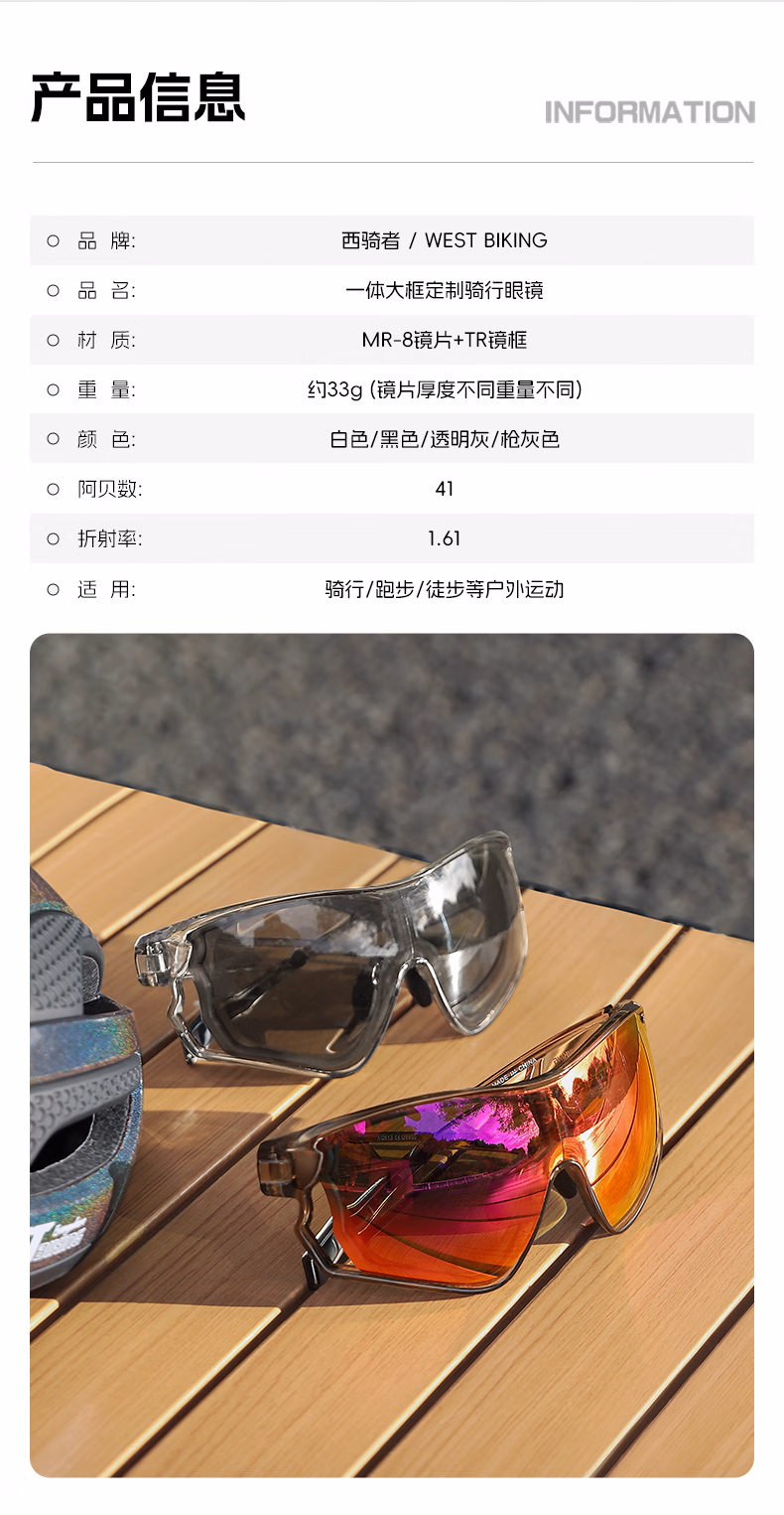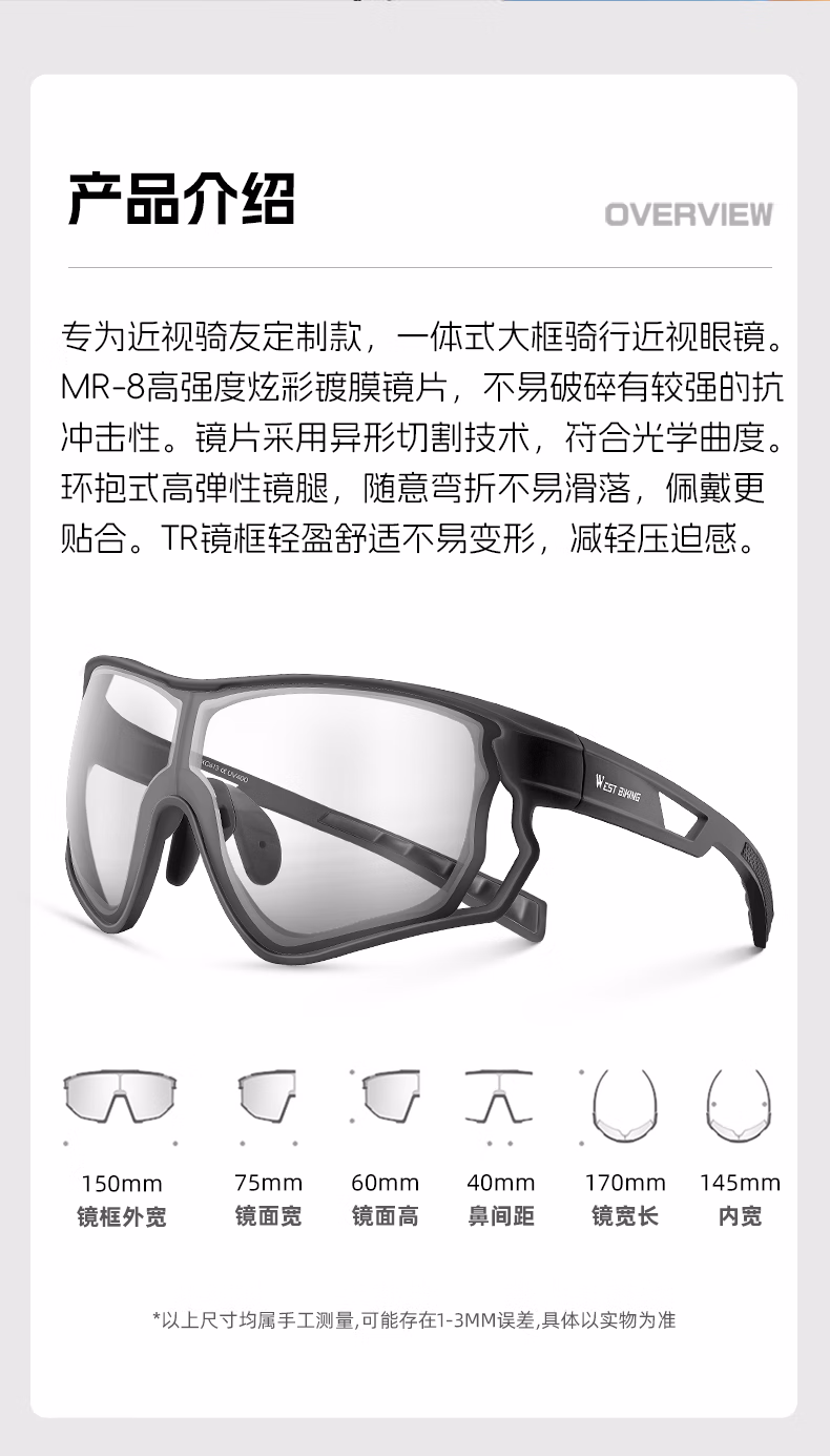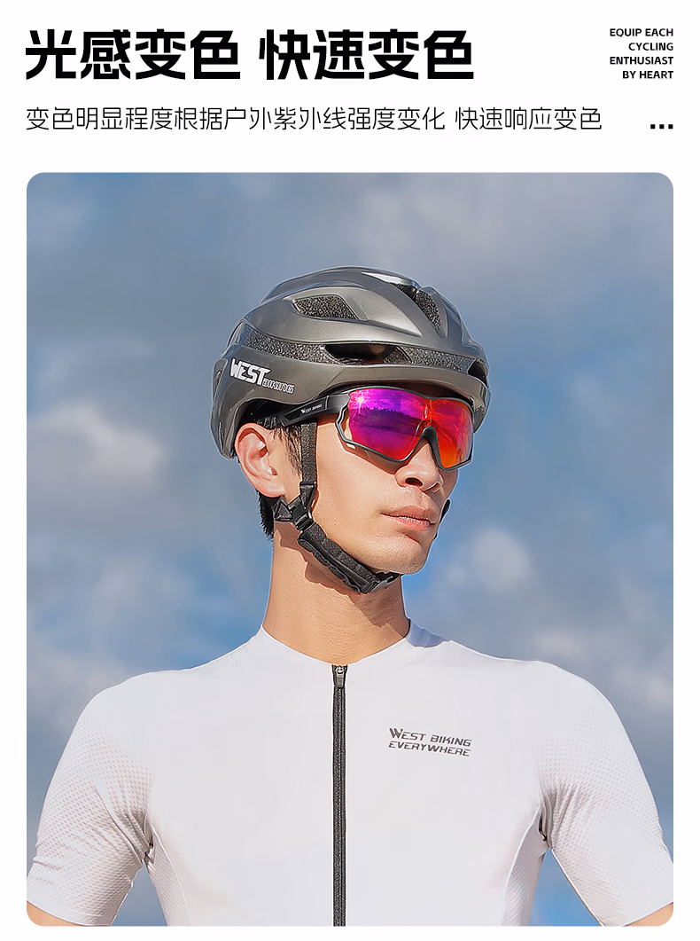 西骑者骑行眼镜一体式近视眼镜定制眼镜户外运动变色偏光炫彩护目镜装备 灰色【变色炫彩红】