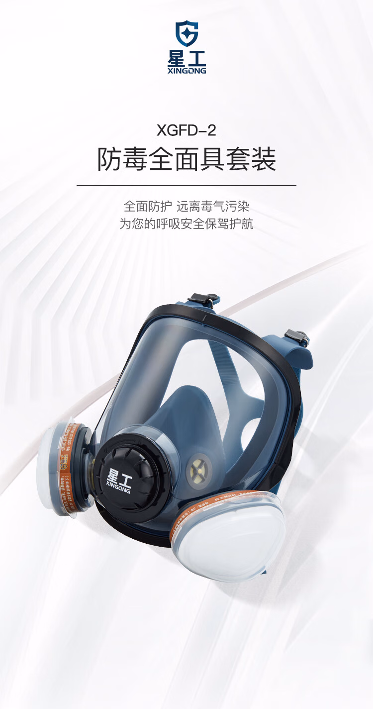 > 星工(XINGGONG)防毒面具套装硅胶全面罩 活性炭口罩/粉尘/苯/醚/醇类化工喷漆印刷有机气体 XGFD-1+40片滤棉+6滤毒盒+防雾眼镜+2盖