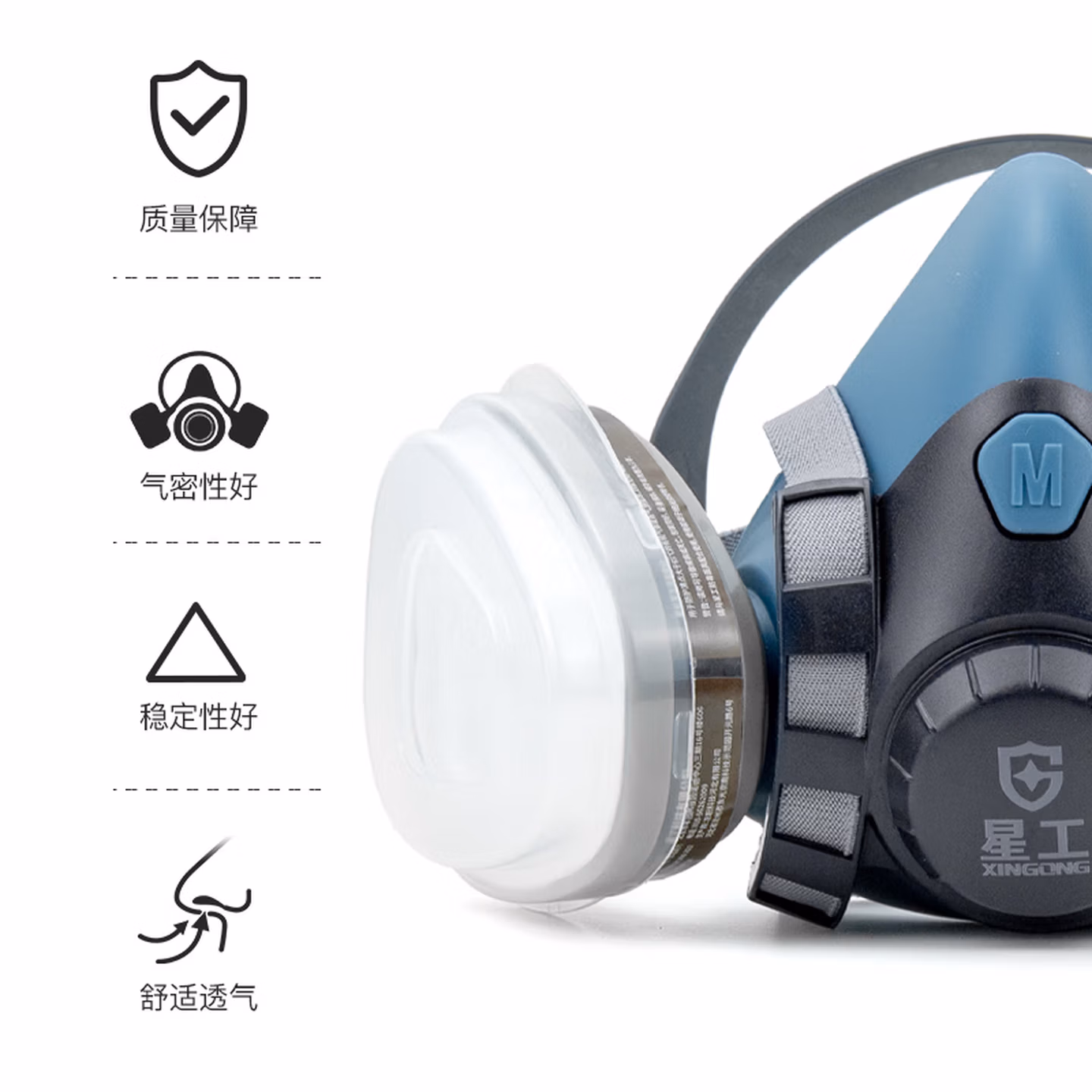 星工(XINGGONG)防毒面具套装硅胶全面罩 活性炭口罩/粉尘/苯/醚/醇类化工喷漆印刷有机气体 XGFD-1+40片滤棉+6滤毒盒+防雾眼镜+2盖