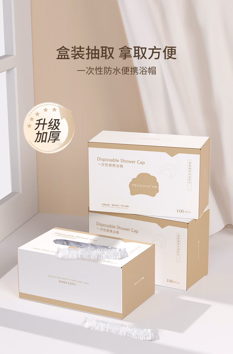 > 妙倩一次性浴帽女防水防油烟家用洗澡加厚发帽套帽头套淋浴帽100支
