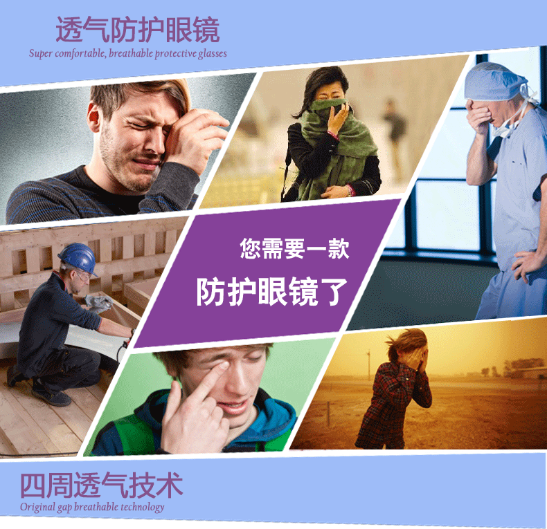 > 成楷科技 全包围护眼罩 防尘防唾沫飞溅骑行防风沙 男 可戴近视镜 防冲击 黑框高清护目镜