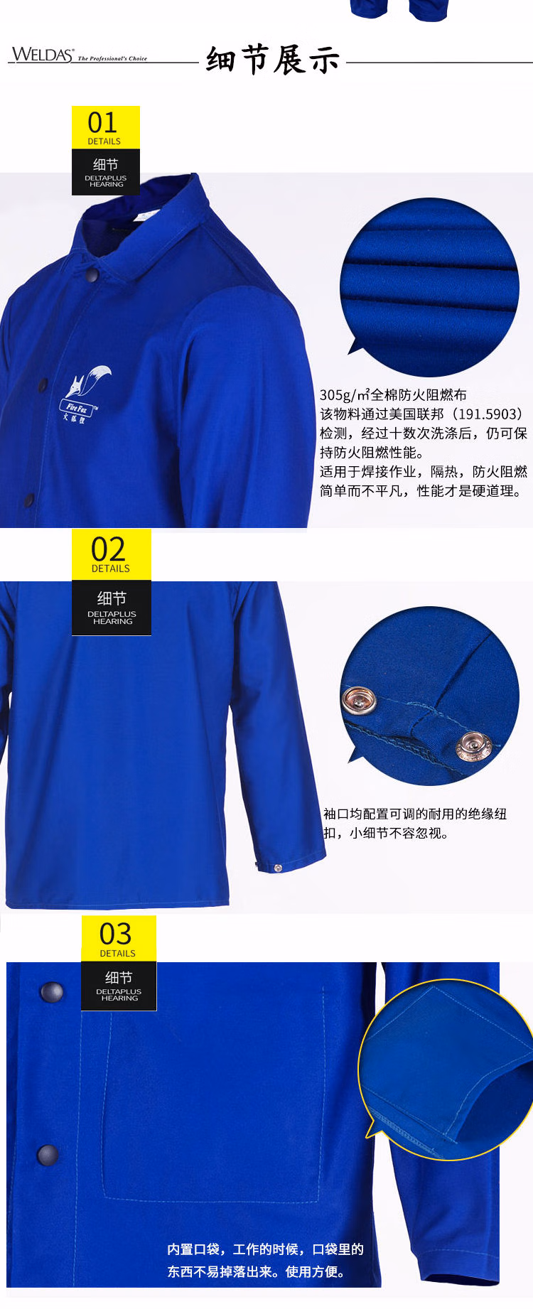 > GJXBP火狐狸3368309700电焊服阻燃隔热防烫工作服焊工服 蓝色上衣33-6830 S